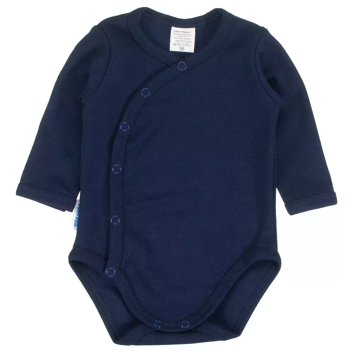 • Dětské body s dlouhým rukávem a zavinovacím zapínáním na druky bez obsahu niklu