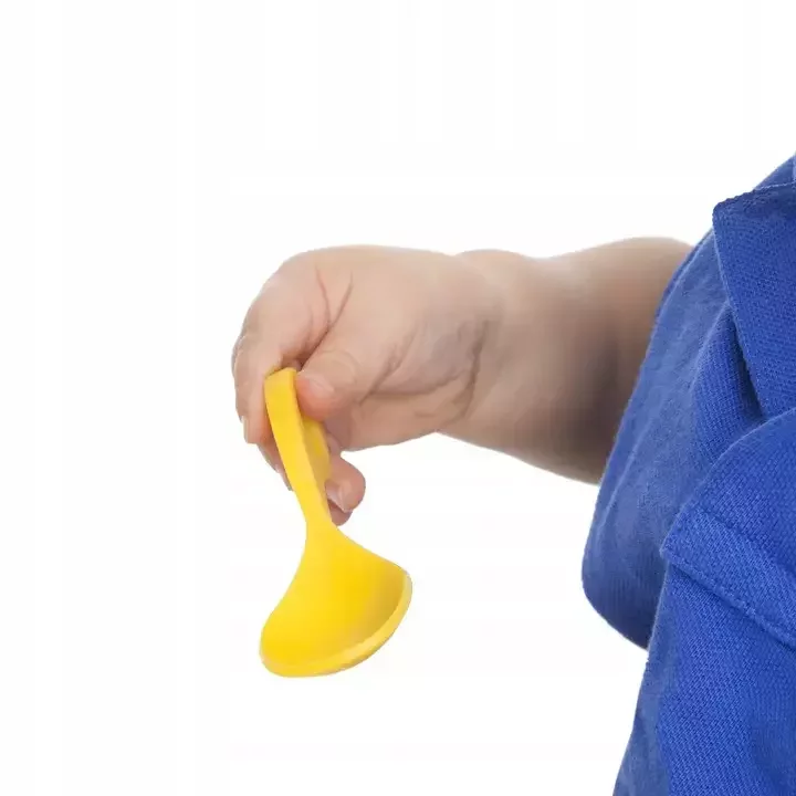 6 různých úchytů, které může dítě využít k procvičování dokonalých motorických dovedností. Pět prstů, přesnost, palec a příčný úchop jsou mnohem užitečnějším úchopem než „celý úchop“, do kterého zve mnoho dětských lžiček. Dítě cvičí prsty místo paže a umožňuje intuitivní přechod od jídla rukama. Otvor v lžíci zajišťuje kontakt mezi palcem a ukazováčkem pro zvýšení stability, a pokud to dítě chce, může držet palec nebo ukazováček, aby zajistil pevný úchop.