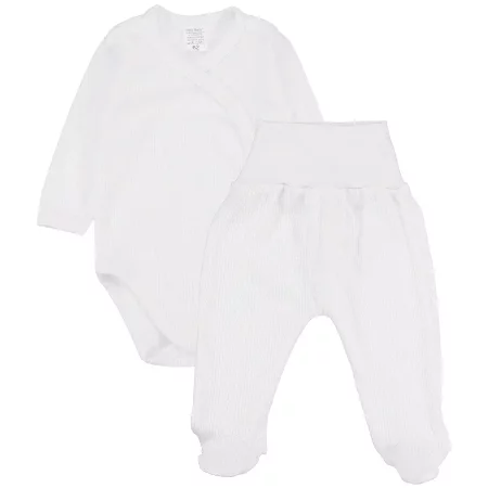 Dokonalý bílý kojenecký set skládající se z psaníčkového body s dlouhým rukávem a spacího obleku s všitými nožičkami. Velmi pěkný nápad na křest nebo jiné významné příležitosti, kdy chceme své miminko slavnostně obléknout. Tradiční body psaníčkového střihu, zapínané po celé délce, lze nosit ke šortkám i sukni - určitě vytvoříte pro své dítě okouzlující outfit. Body je oblečení nejblíže dětskému tělu – musí být vyrobeno z nejkvalitnější látky. Pečujte o pokožku svého dítěte a vyberte si tento klasický polský výrobek, prolamovaný set v bílé barvě, ještě dnes.