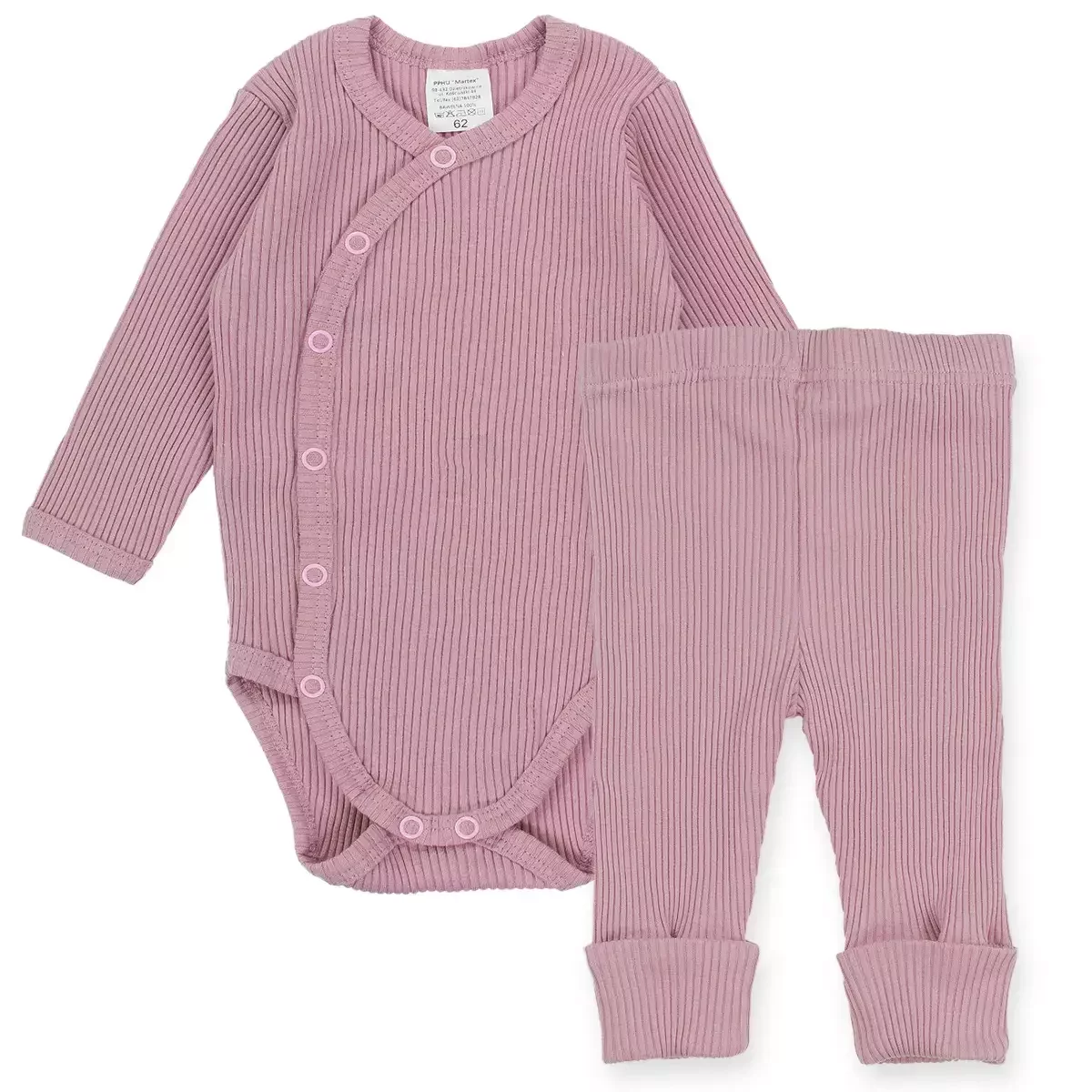 Kojenecká souprava - Žebrované zavinovací body + Kalhotky - růžová