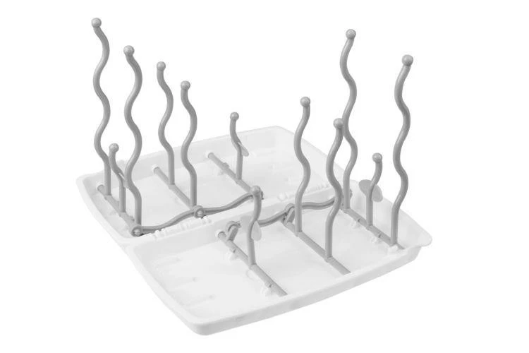 Víceúčelový sušák na láhve a dudlíky je ideálním produktem na doma i na cesty. Je to funkčnívhodné pro všechny typy lahví, snadná montáž a čištění. Je navržen tak, aby bylo možné snadno sbírat vodu bez nutnosti pokládat ji na dřez.