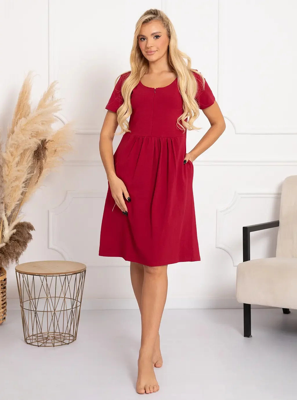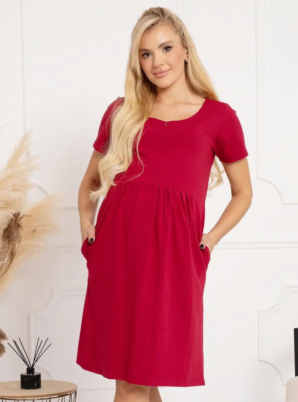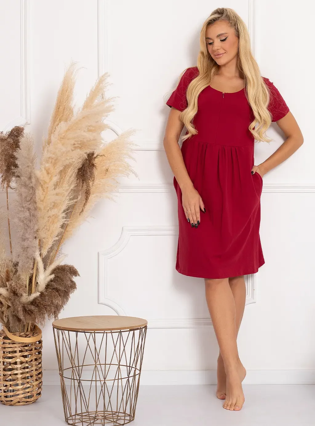 Vyplatí se pořídit těhotenské noční košile v setu s těhotenským županem a doplnit kvalitní noční prádlo, které nezpůsobí alergii mamince a miminku. Bavlněná kojící košile Laura se zipem je pěkné, ženské a pohodlné duo, které vám umožní vypadat hezky při krmení vašeho miminka. Volte kvalitu a pohodlí, pokud má košile sloužit jak v nemocnici, tak i doma, Burgundská Laura bude skvělou volbou!