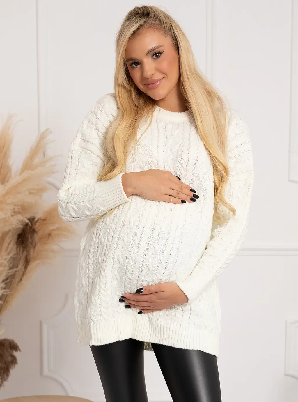 Investujte nyní do pohodlných svetrů na chladnější dny nebo zimní večery. Dokonalý svetr s dlouhým rukávem a atraktivním copem je perfektní volbou! v těhotenství, ale i na období před a po. Jemný ecru svetr je pěkný outfit, který vás může provázet v každé fázi těhotenství, protože klasické svetry jsou modelem, který nikdy nevyjde z módy a může úspěšně posloužit jako volnější těhotenský svetr pro budoucí maminky. Stylové dámské svetry se hodí k legínám nebo sukni a nahradí klasické těhotenské oblečení v každé fázi těhotenství.