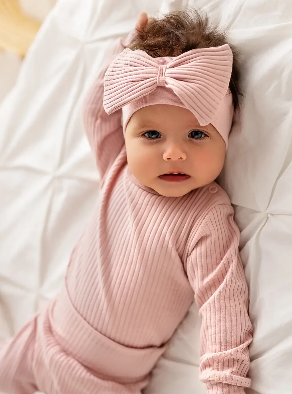 Dětská čelenka Natural Harmony s mašlí - Powder Pink