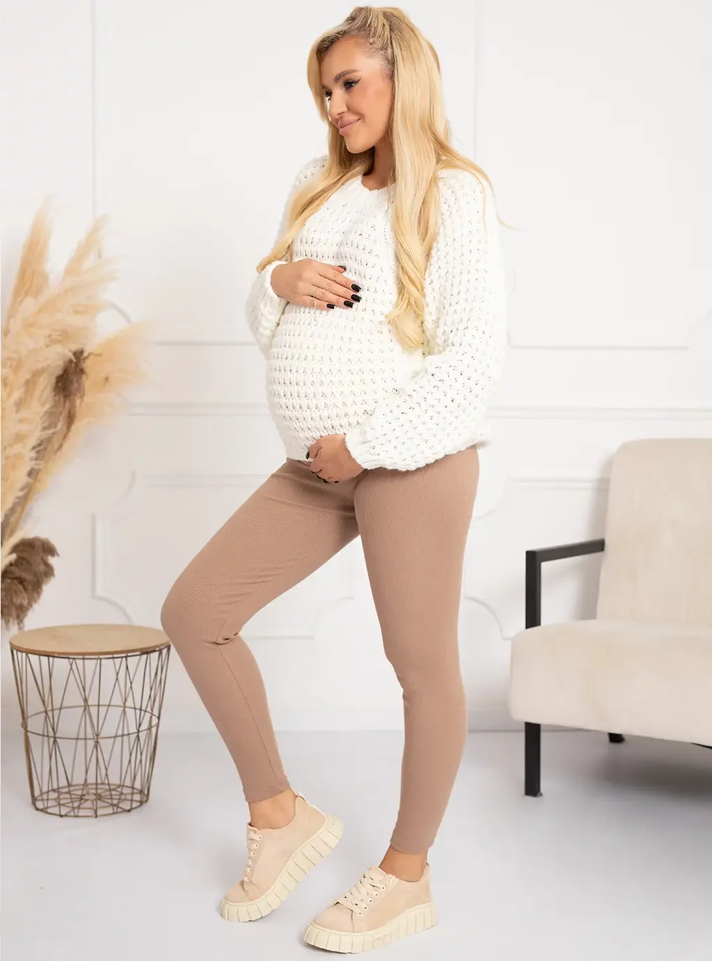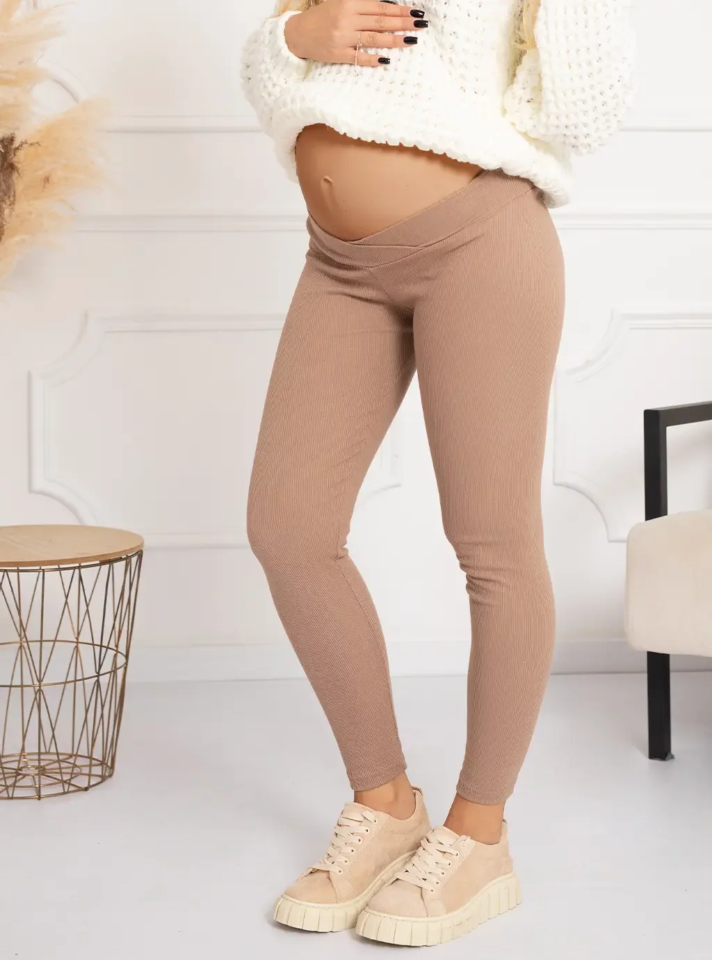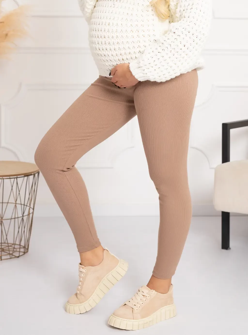 Žebrované těhotenské legíny Lisbona - Cappuccino