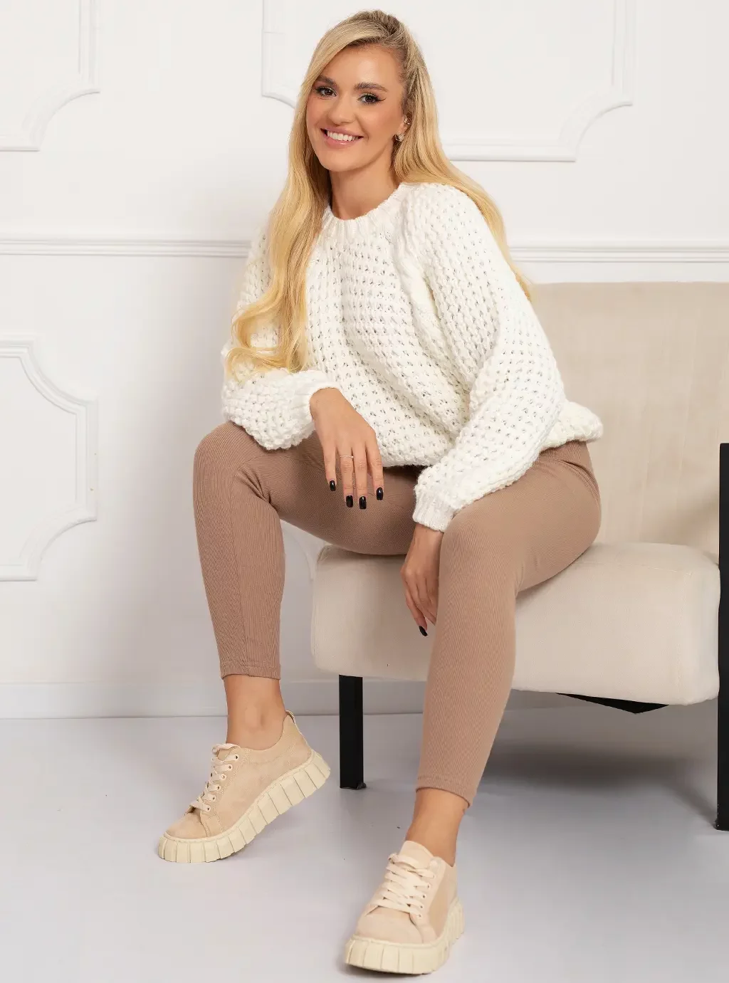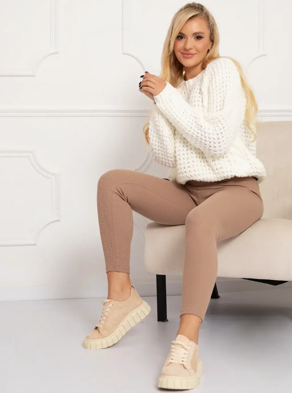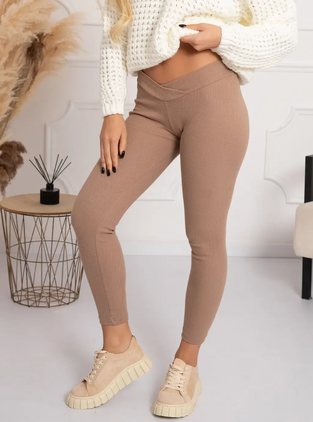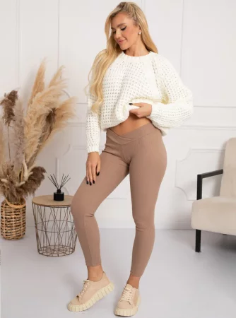 Žebrované těhotenské legíny Lisbona - Cappuccino