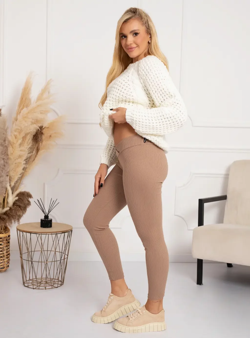 Žebrované těhotenské legíny Formommy Lisbona - Cappuccino