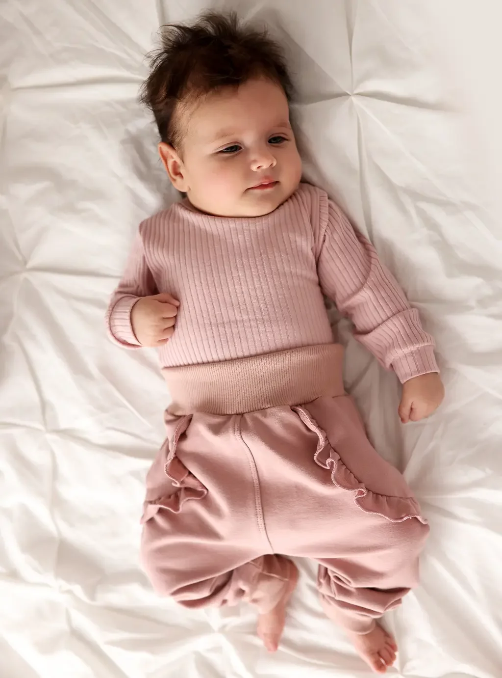 Kolor brudny róż zawsze modny w niemowlęcej garderobie