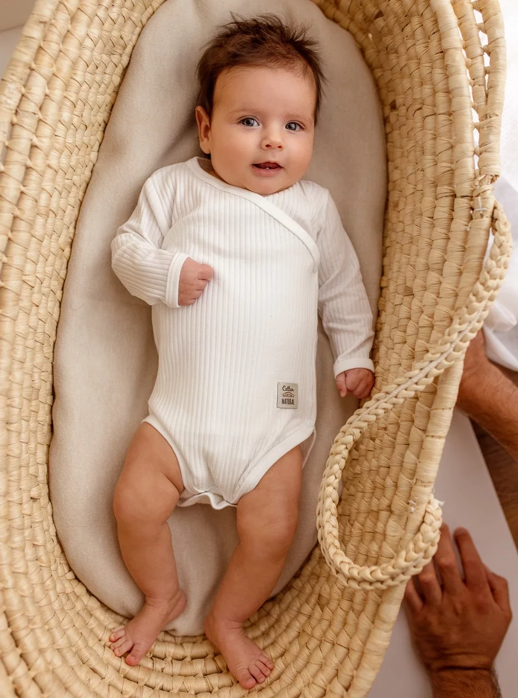 Kojenecká body ihned k odběru na našem webu. Kolekce Natural Harmony zahrnuje oblečení vyrobené v Polsku, zapínání na patentky bez obsahu niklu. Klasický dokonalý outfit s módním ecru pruhem , který žádná budoucí ani mladá maminka nemůže ignorovat. vysoce kvalitní 100% bavlněné kojenecké body s dlouhým rukávem je dokonalé bavlněné kojenecké body od polské značky Makoma. Ve firemní kolekci nechybí ani body s krátkým rukávem na zip nebo pěkný dupač s dlouhým rukávem. Nasbírejte celou sérii dětského oblečení ze 100% bavlny a vyberte pro svého drobečka cool styl .