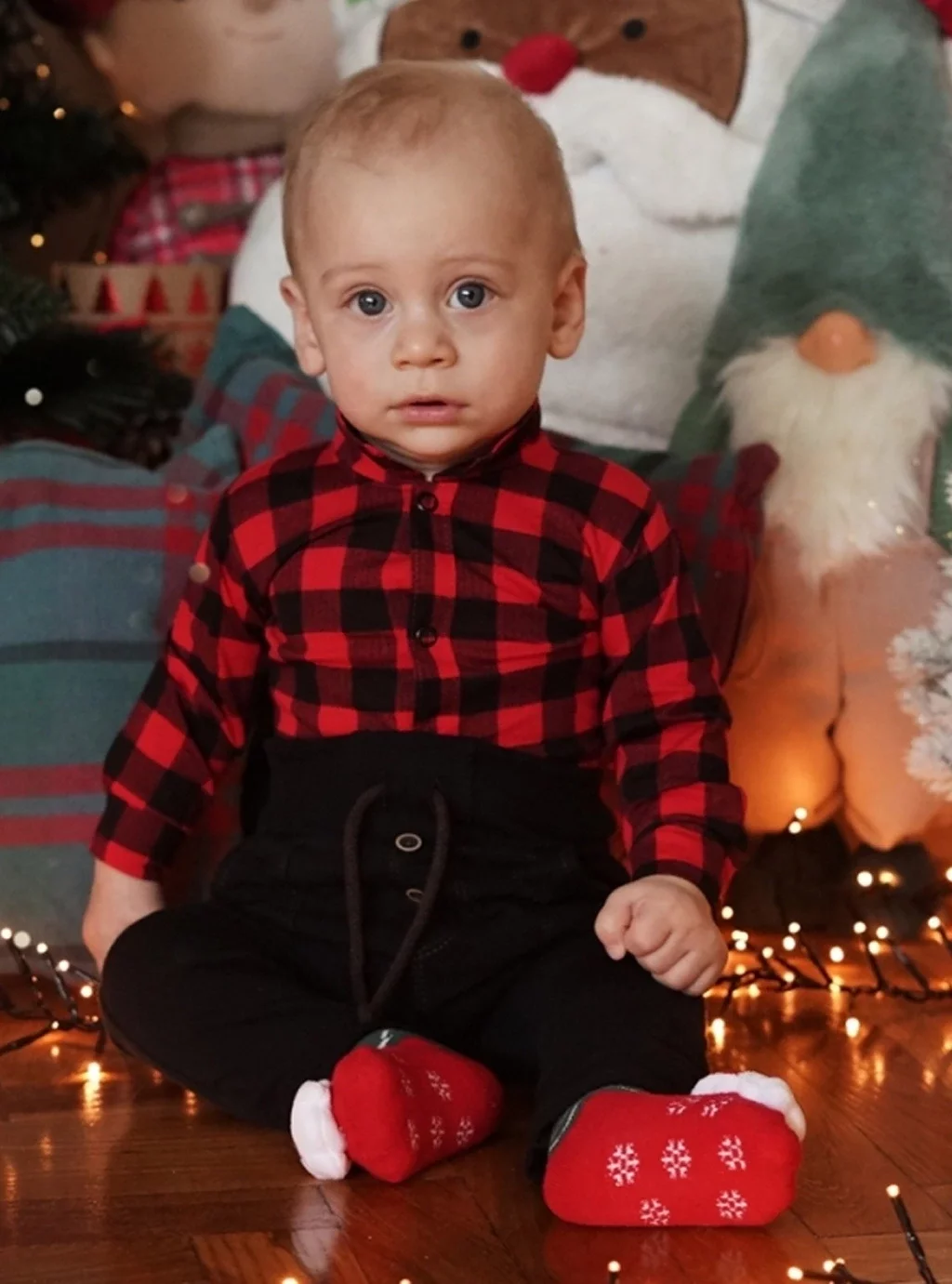 Červenočerné košilové body s límečkem, knoflíky na rukávech a druky bez obsahu niklu. Body Roger je vyrobeno ze 100% bavlny, příjemné na dotek, měkké a bezpečné pro miminko. Antialergické patentky rozepínané uprostřed a v rozkroku usnadňují výměnu plenky v případě potřeby. Pohodlné body je pečlivě ušité s důrazem na nejmenší detaily a dokáže úspěšně napodobit košili, kterou nosí váš tatínek. Okouzlující kostkovaná košile se bude hodit při mnoha slavnostních příležitostech, a pokud zvolíte různé doplňky, můžete vytvořit mnoho elegantních stylizací.