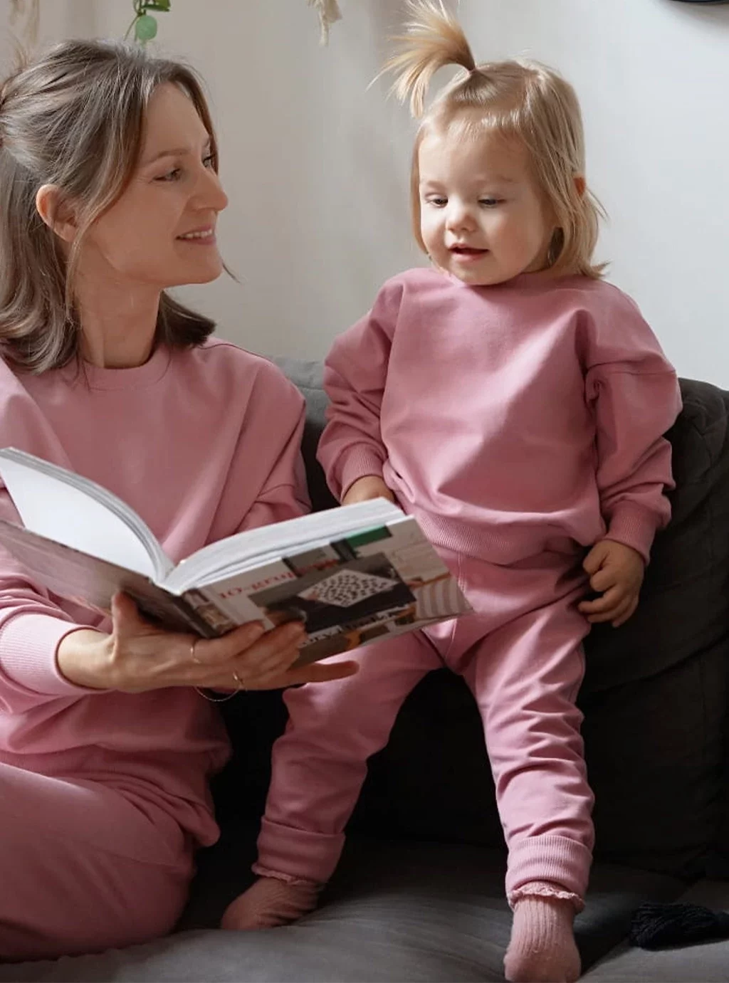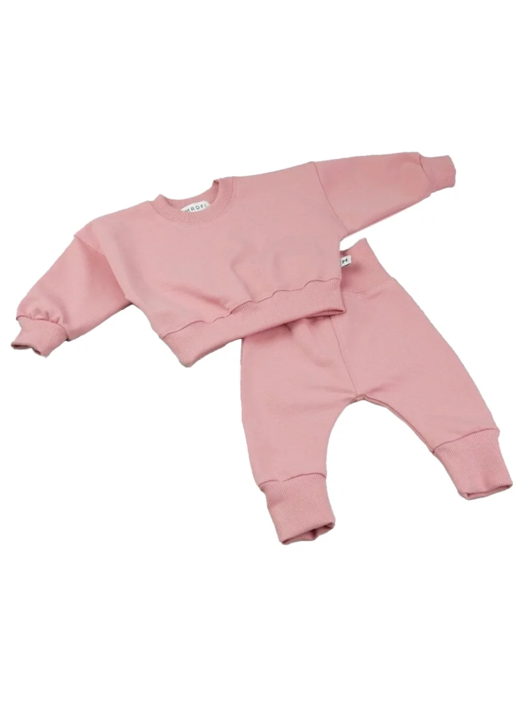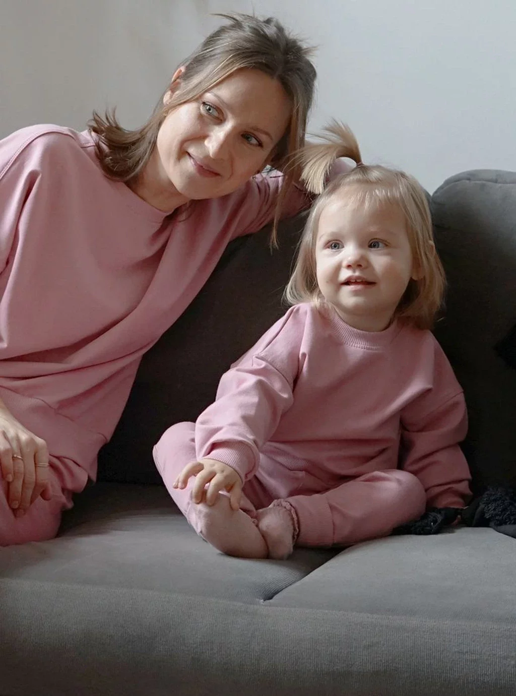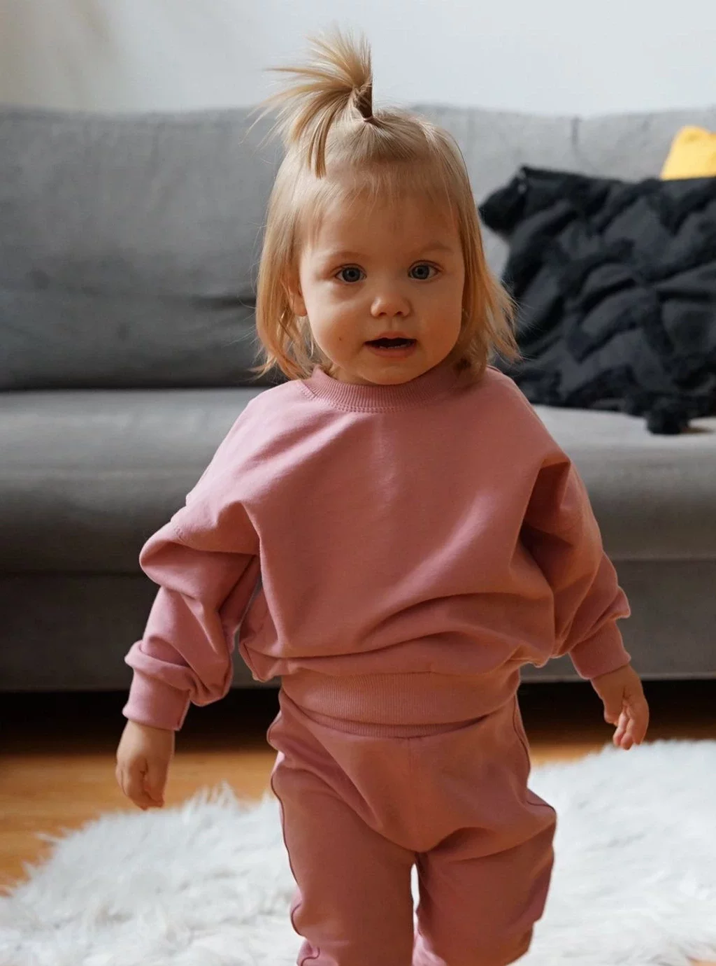 Vysoce kvalitní, klasická růžová tepláková souprava pro holčičky. Stylový outfit připomínající maminčinu nebo tatínkovu teplákovou soupravu. Mikina s neškrtící manžetou a tepláky jednoduchého módního střihu vytvoří pěkný outfit jak na procházku, tak na zábavu v chladnějším dni. Vyberte si růžovou teplákovou soupravu pro dívky a přesuňte se do světa módy a stylu s klasickou teplákovou soupravou od Mrofi.