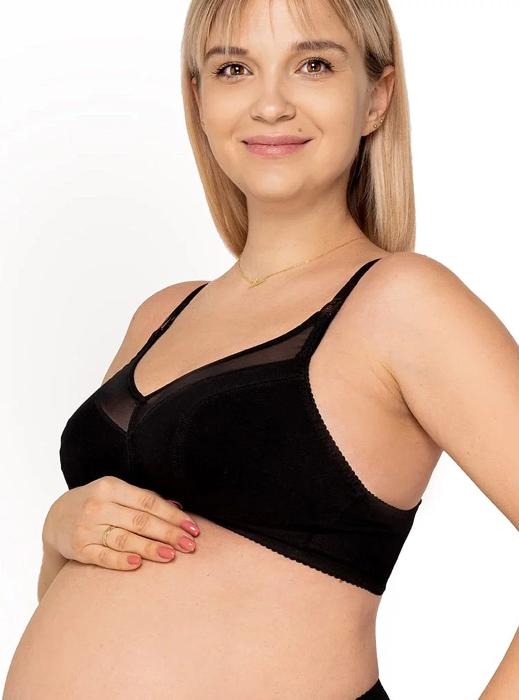 Měkké a pohodlné těhotenské a kojící podprsenky z bavlněného materiálu, který je dokonale prodyšný a pečuje o vaše prsa od prvního trimestru i po něm během kojení. Vyztužená kojící podprsenka může být nepohodlná, ale naše hebká černá Allday bude od rána do večera jako druhá kůže. Dokonalá kojící podprsenka vyrobená z měkké látky usnadní diskrétní krmení díky Fildanovým sponkám Easy-Off, které odepnete jednou rukou, aniž byste miminko položili. Funkčnost podprsenek je velmi důležitá – vybírejte kojící spodní prádlo a nejlépe kojící podprsenku, která je černá All day.