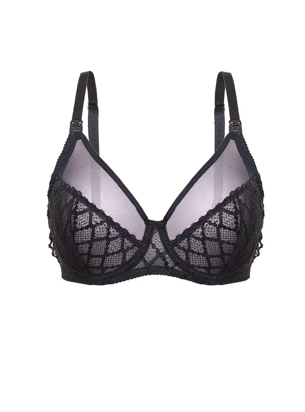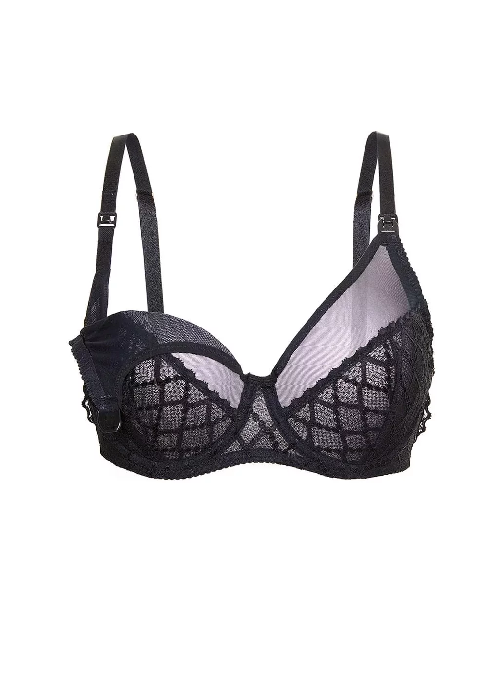 Perfektní pohodlná kojící podprsenka ve velikostech 75B-75H. Černá kojící podprsenka pro maminky s měkkým košíčkem a snadným odepínáním jednou rukou usnadní kojícím maminkám krmení miminka, aniž byste ho museli sundávat k rozepínání podprsenky. Těhotenské podprsenky Huggy mají měkké košíčky vyrobené z kombinace krajky a tylu, což jim dodává ještě větší kouzlo a umožňuje zachovat si ženský a sexy vzhled i v těhotenství. Nejlepší kojící podprsenka, která tvaruje ňadra a drží je na místě, je podprsenka s pohodlným košíčkem. Pokud máte zájem o kojící podprsenky, které vám usnadní diskrétní krmení, vyberte si pohodlnou kvalitní černou podprsenku.
