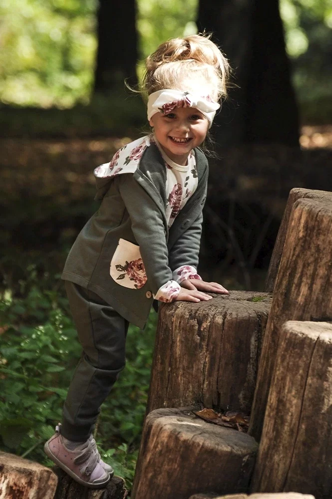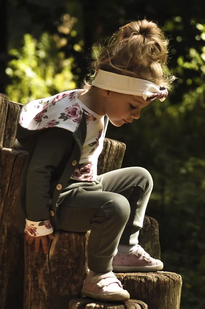 Stylová dětská mikina v zeleném odstínu s manžetami a ozdobnou kapsičkou typická pro kolekci Roses se skvěle hodí pro holčičku. Dětská mikina se sukní nebo šatičkou a teplými punčochami a vaše holčička je připravena na procházku v chladném dni. Vysoce kvalitní dětská mikina ze 100% khaki bavlny s důrazem na nejmenší detaily.