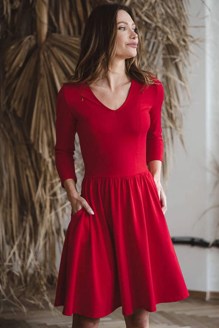 Originální dámské šaty na kojení i mimo něj... jsou nejen praktické, ale i odolné - naše červené šaty pro kojící maminky se nedeformují ani po mnoha vypráních, což znamená, že jejich módní tvar a intenzivní barva vás budou provázet dlouhá léta .období. Navíc mají šaty dvě všité prostorné kapsy, které vám pomohou uložit všechny potřebné věci při krmení nebo procházce.