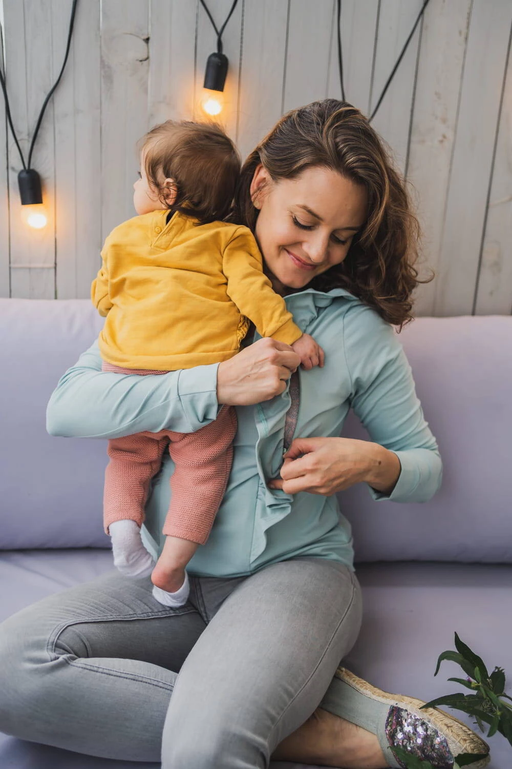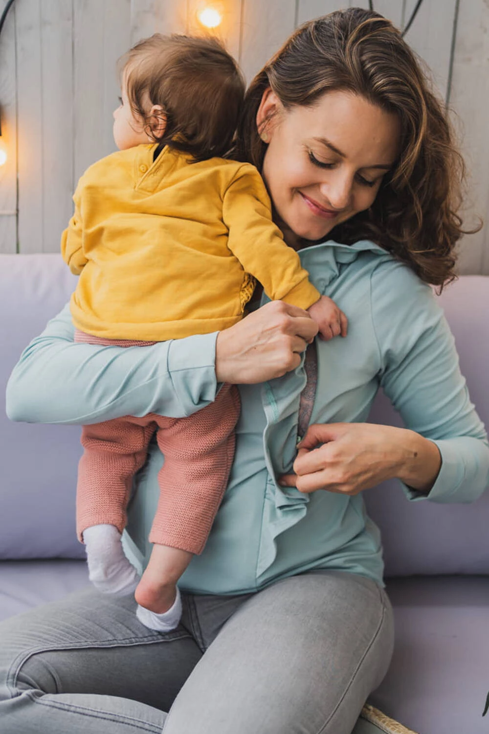 Kojící halenka Milky Waves s dlouhým rukávem v mint barvě spojuje eleganci, pohodlí a praktičnost, bude skvělou volbou pro každou kojící maminku. Kolekce Milky Waves obsahuje různé barevné modely, neomezujte se pouze na jeden :)