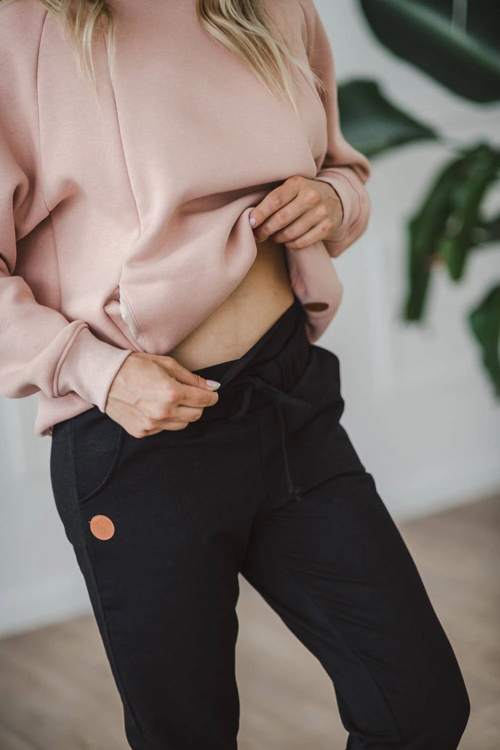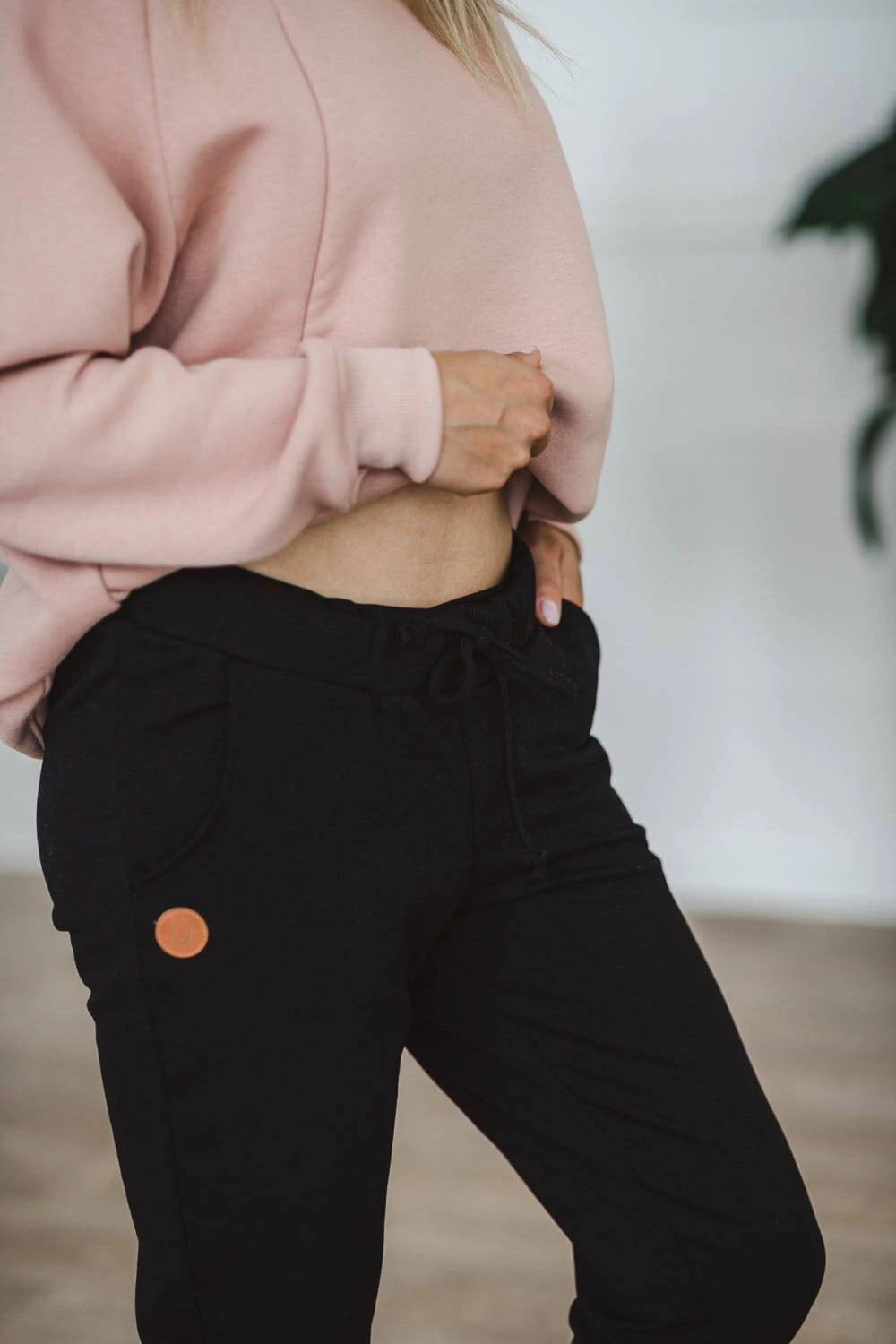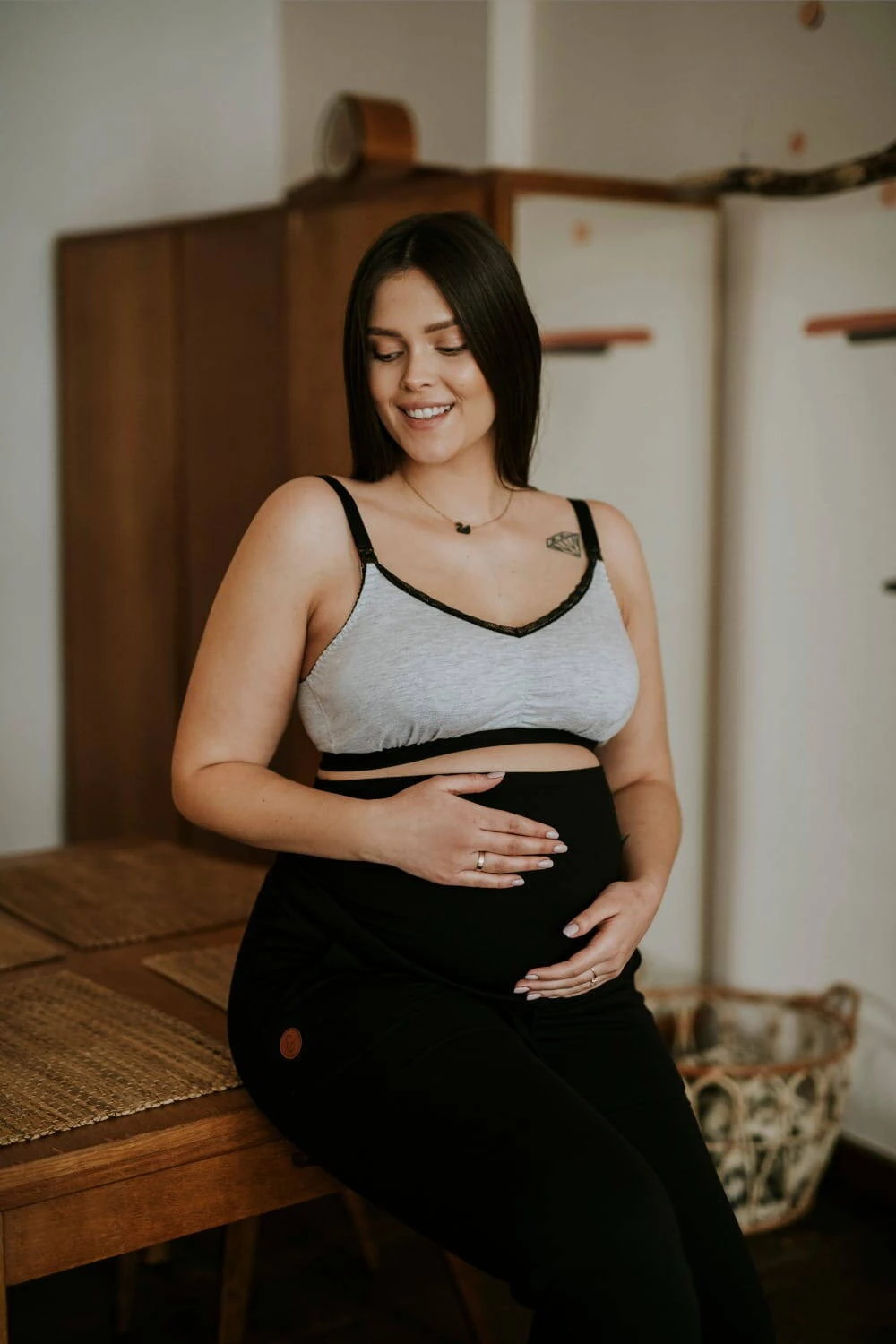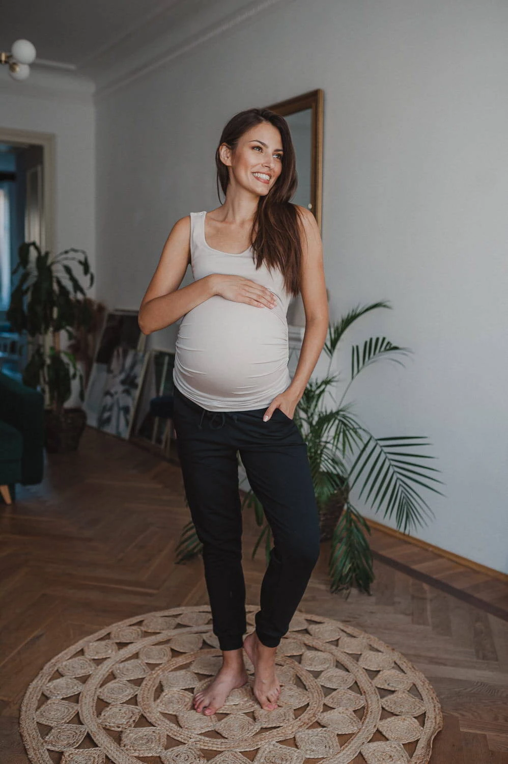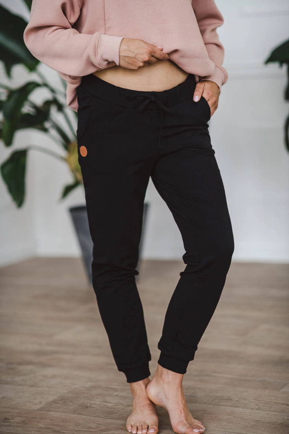 Černé těhotenské tepláky jsou nabídkou pro ženy, které ocení skvělý outfit, funkčnost a vysokou kvalitu. Těhotenské kalhotky pro budoucí maminky navržené s ohledem na pohodlí se skvěle hodí jak při čekání na miminko, tak po těhotenství. Těhotenský panel a úprava stahovací šňůrky v těchto všestranných kalhotách vám umožní volný pohyb, aniž byste svírali břicho, což se promítá do vysokého pocitu pohodlí během tohoto jedinečného období.