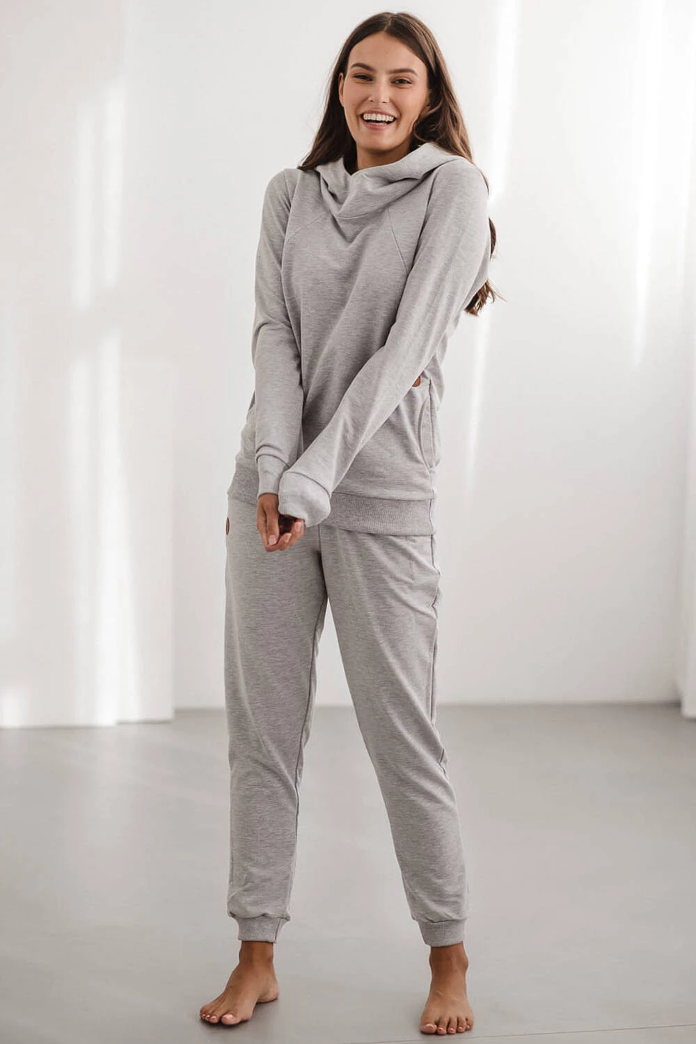 Šedé těhotenské kalhoty pro budoucí maminky jsou nabídkou pro ženy, které oceňují péči, funkčnost a vysokou kvalitu. Design těchto těhotenských kalhot byl vytvořen s ohledem na pohodlí a cool vzhled. Je perfektní jak při čekání na miminko, tak po jeho narození. Těhotenský panel a úprava šňůrky na těchto všestranných kalhotách vám umožní volný pohyb, aniž byste svírali břicho, což se promítá do pocitu pohodlí.