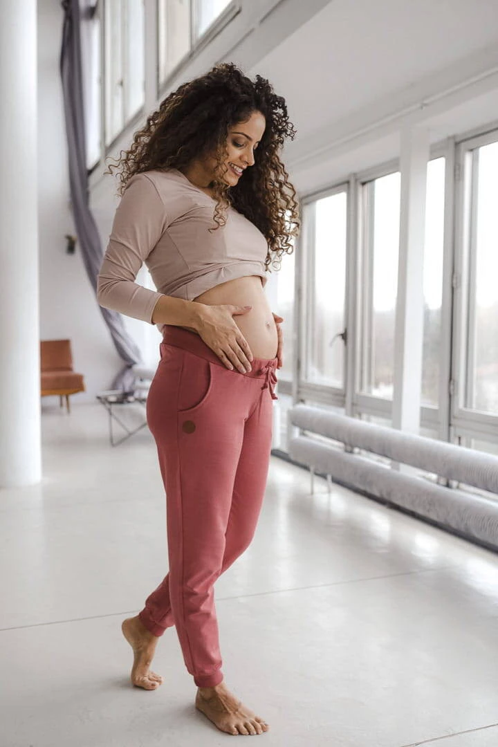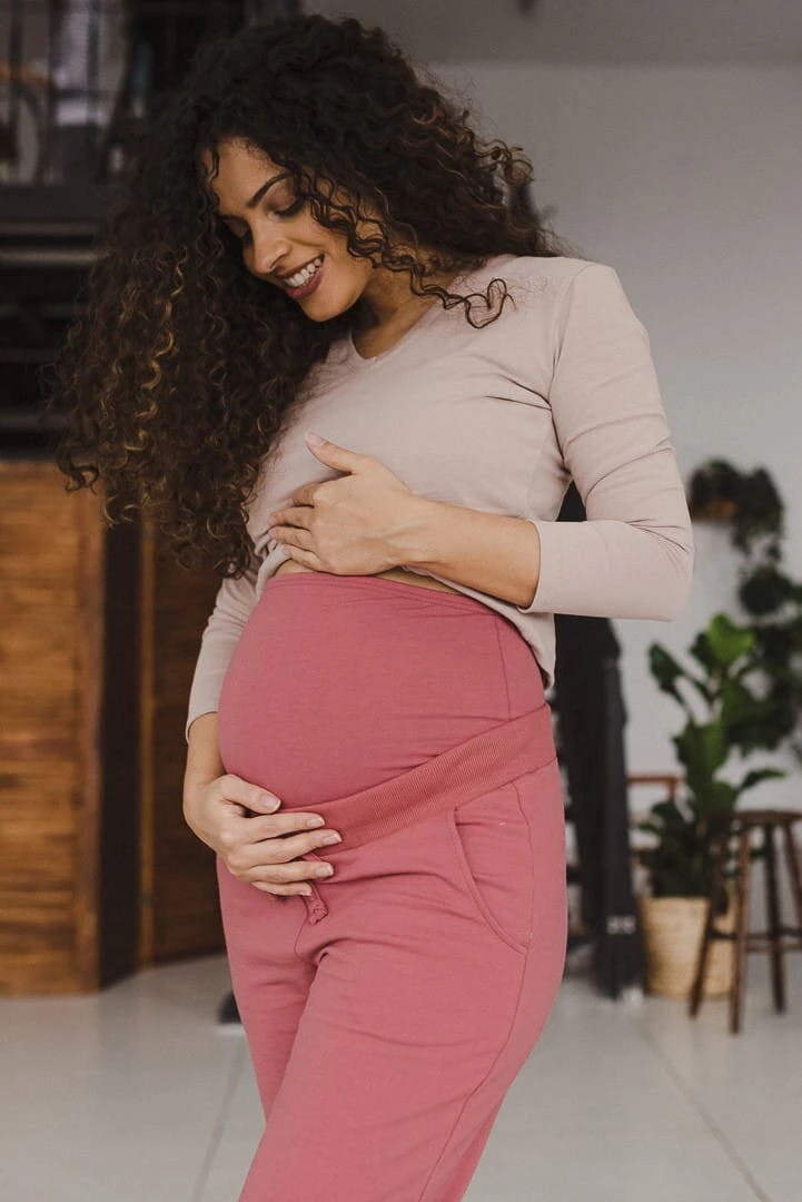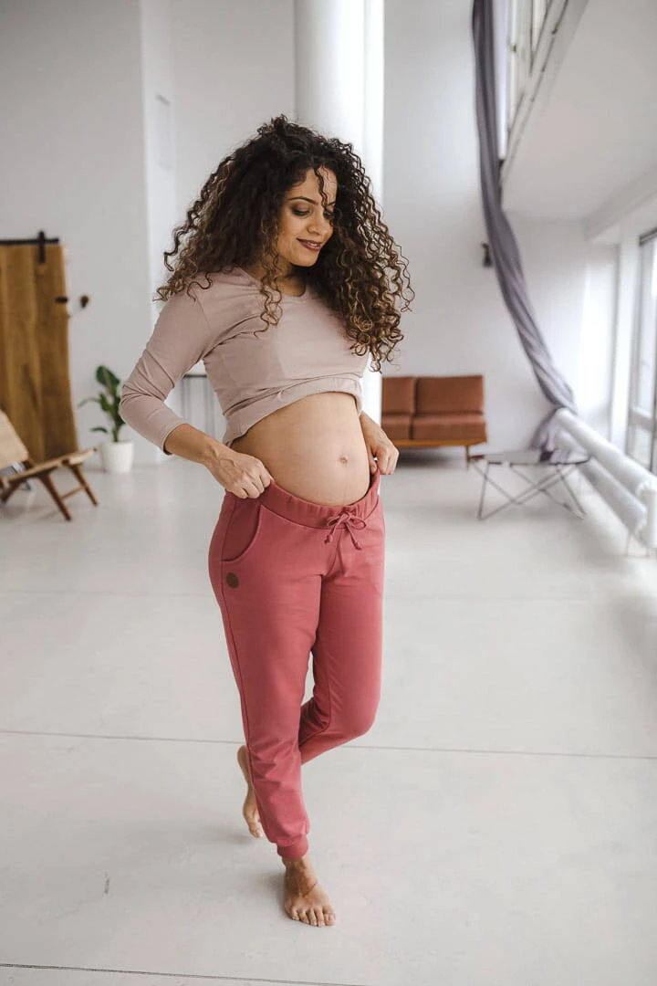 Pokud čekáte dítě a chcete vypadat stále žensky a přitažlivě, vyberte si kvalitní těhotenské oblečení . Nezbytností je těhotenské oblečení, které vám poskytne pohodlí a oporu pro vaše těhotenské bříško. Dokonalé růžové tepláky jsou stylovým řešením zejména v teplých dnech, kdy je lze kombinovat s měkkým tričkem. Pohodlné těhotenské kalhoty budou nenahraditelné i v chladnějších dnech ve spojení s teplou těhotenskou mikinou ze stejné kolekce. Praktické těhotenské kalhoty jsou v tomto zvláštním období těhotenství nezbytným prvkem vašeho šatníku. Tepláky v jedinečné růžové barvě jsou návrhem pro ženy, které oceňují jak estetiku, tak funkčnost. Střih kalhot, který bude dobře fungovat i po porodu, byl navržen s ohledem na pohodlí každé z vás. Speciální těhotenský panel a úprava stahovací šňůrky v těchto pohodlných kalhotách netlačí na bříško a zajistí vám pohodu během těhotenství i po něm.