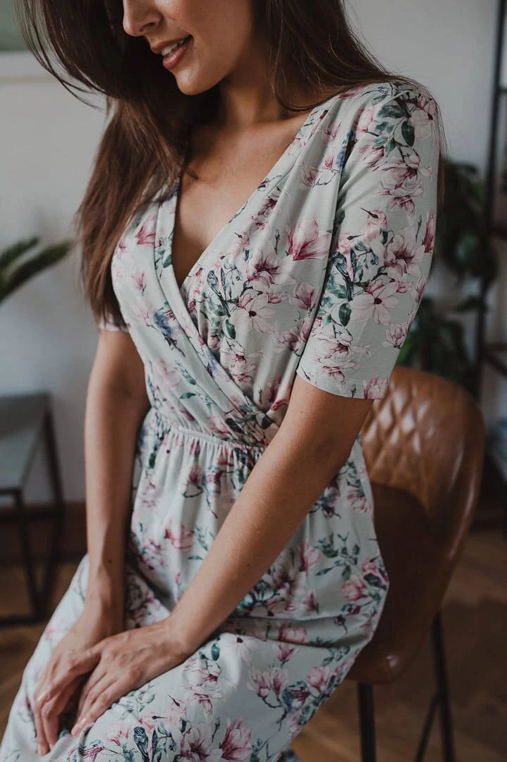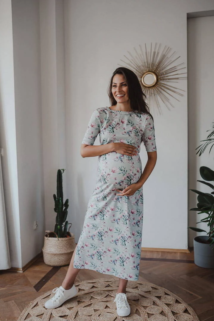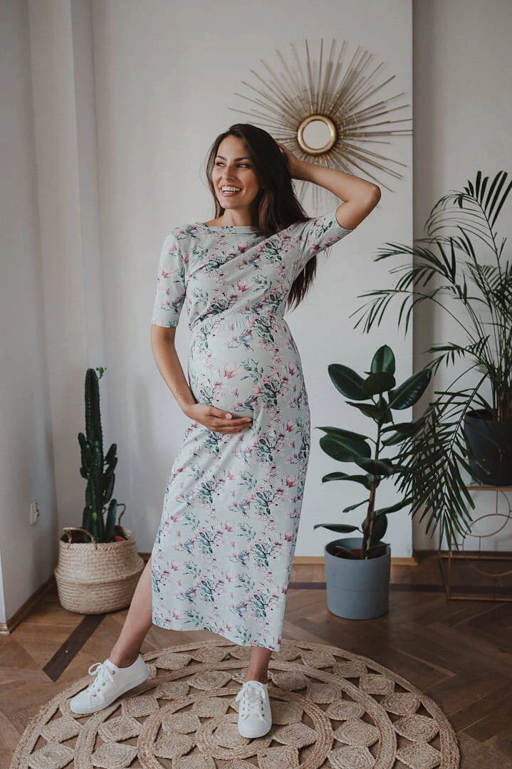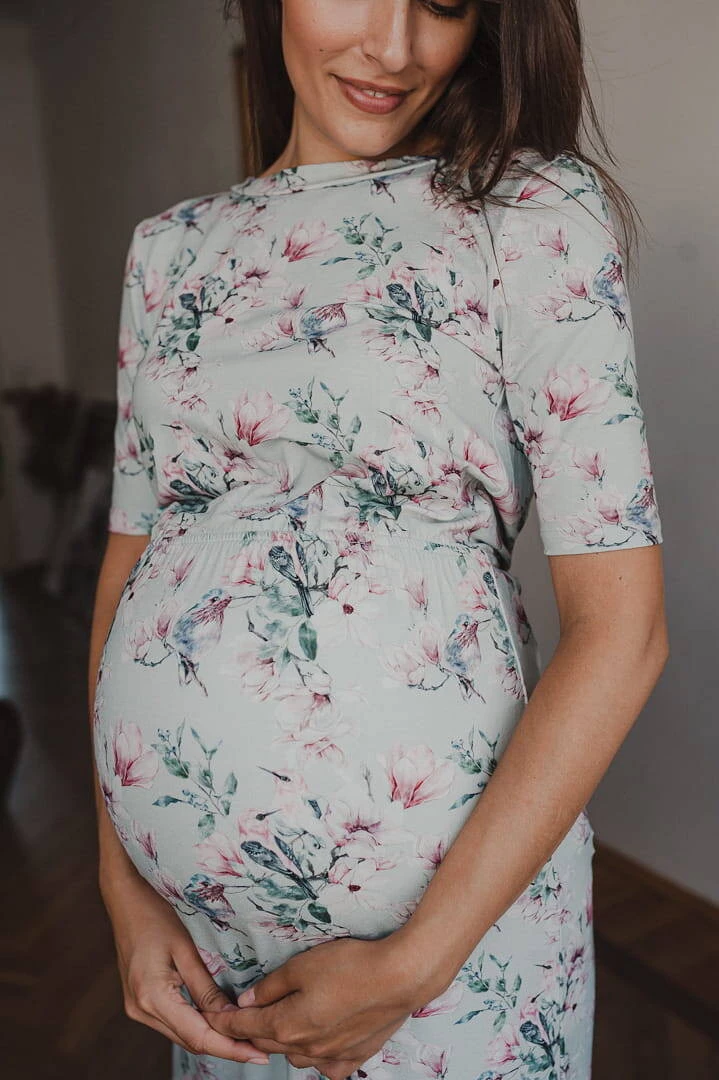 • Jemný vzor květů magnólie dodává mateřským šatům jedinečný šarm a eleganci, díky čemuž se stávají nepostradatelným prvkem vašeho šatníku, který si zamilujete od prvního oblékání.