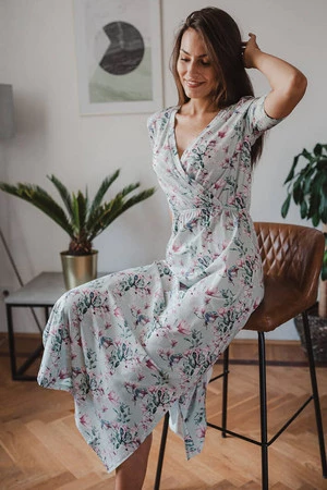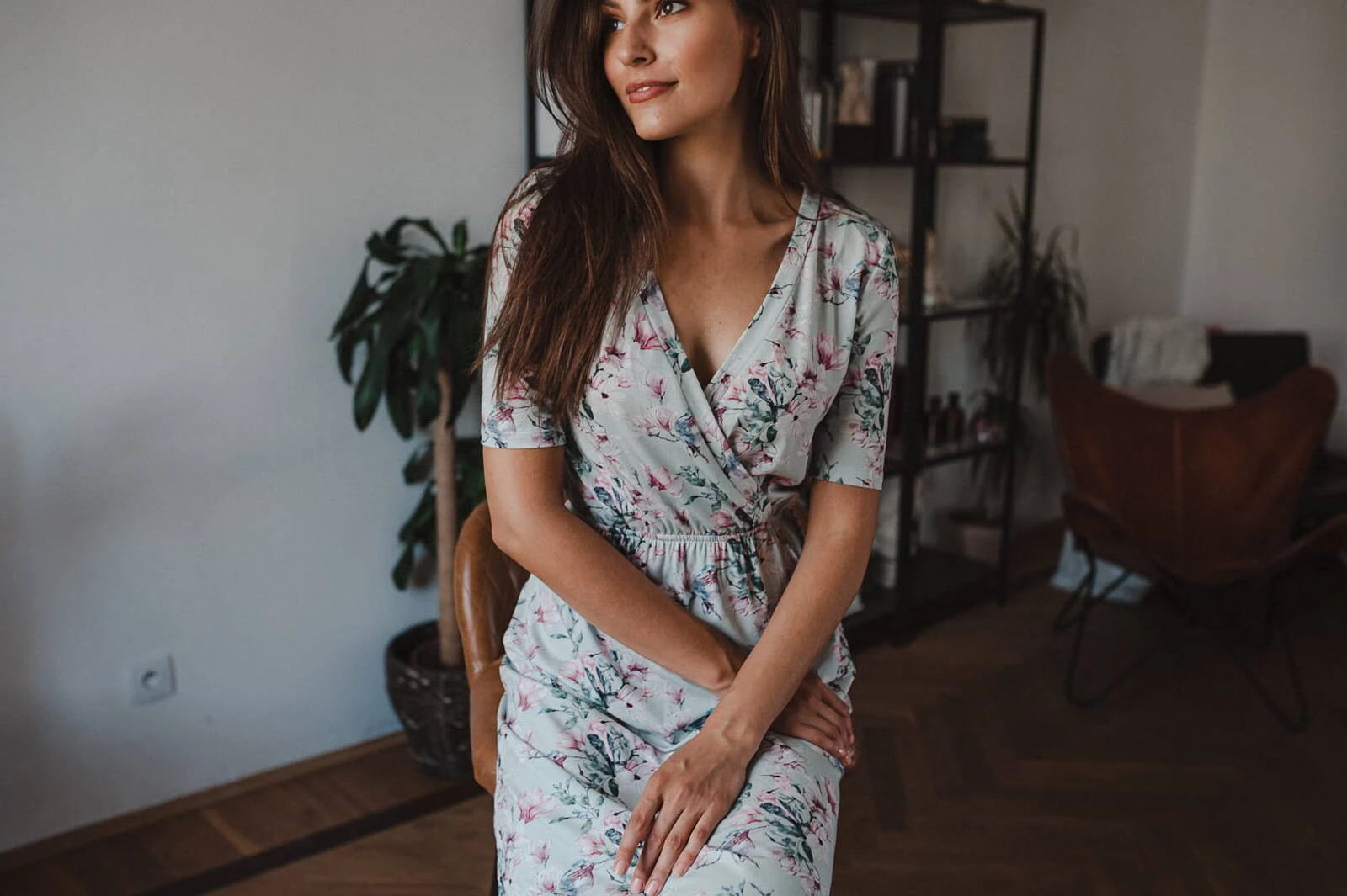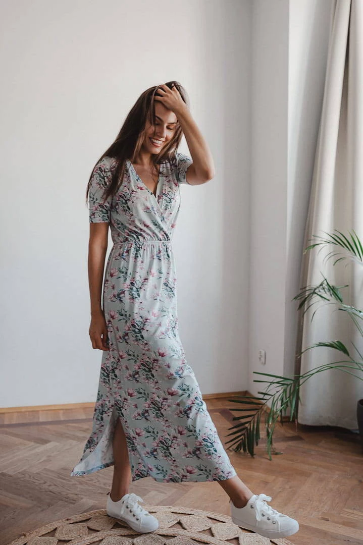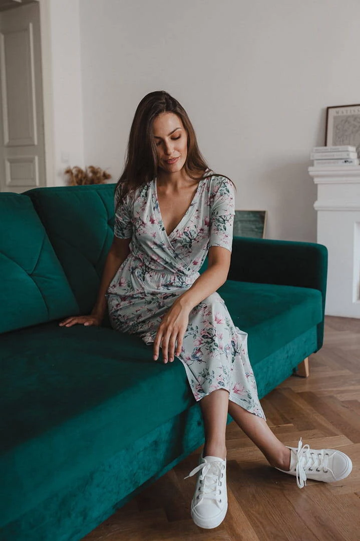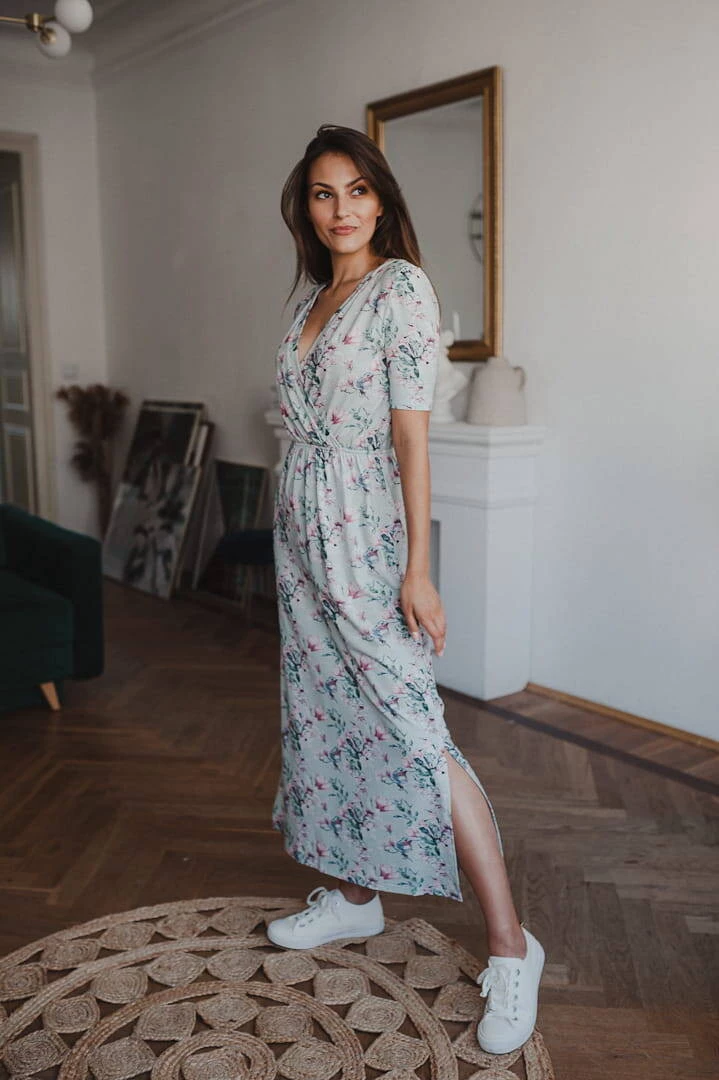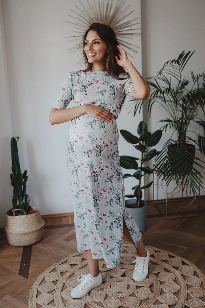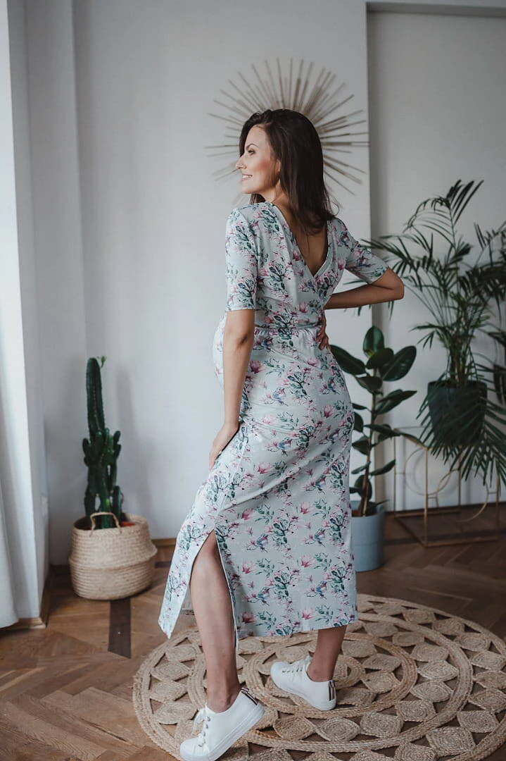 Vyberte si do svého šatníku notu svěžesti a elegance díky našim jedinečným šatům pro kojení a těhotenství ze série Two Ways LONG s krásnými magnóliemi a ptáčky. Jedinečné oboustranné šaty pro těhotné, které usnadňují diskrétní kojení a umožňují vám užít si chvíle relaxace a jedinečné chvíle s vaším miminkem.