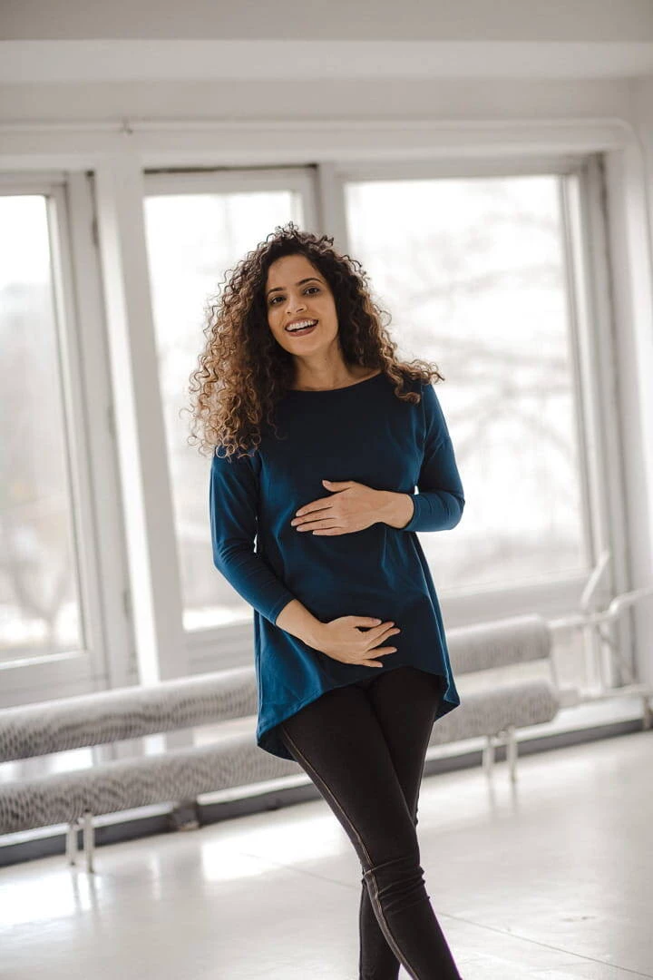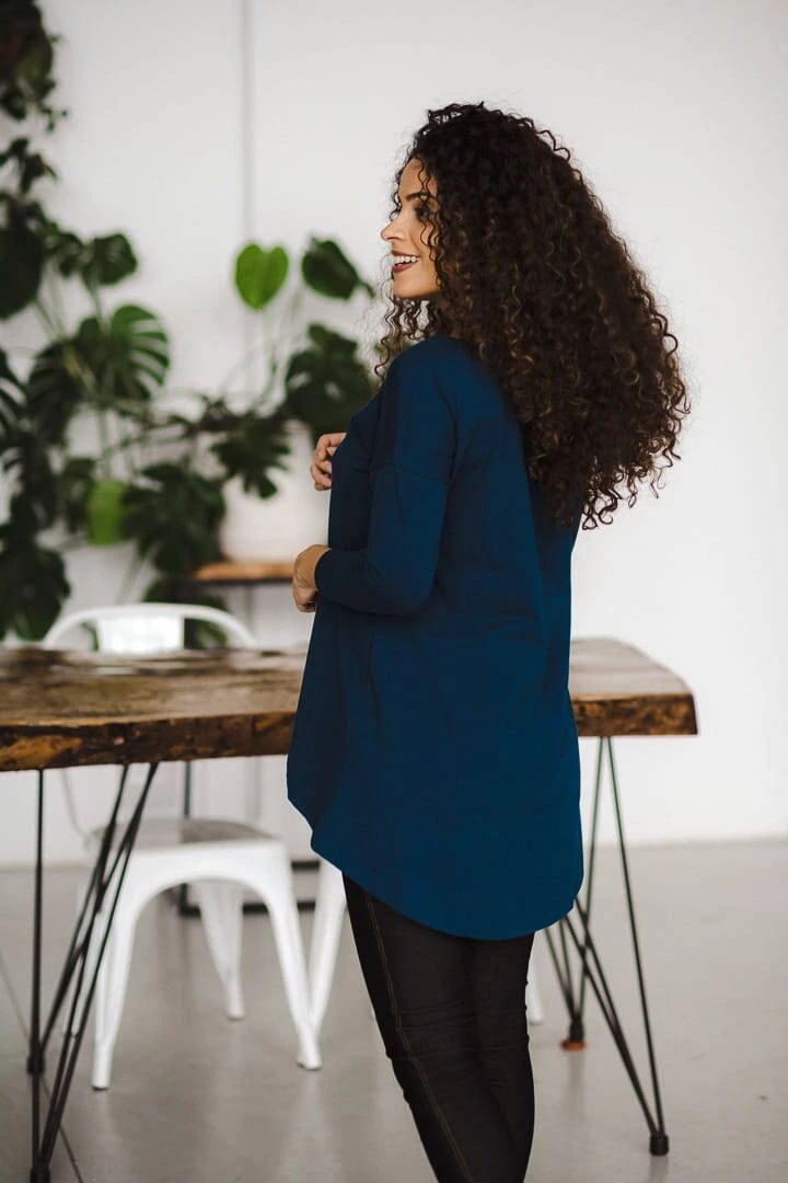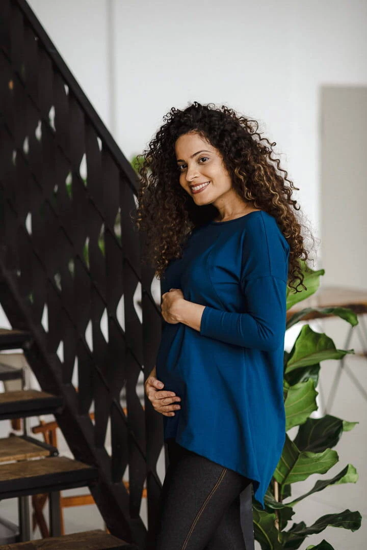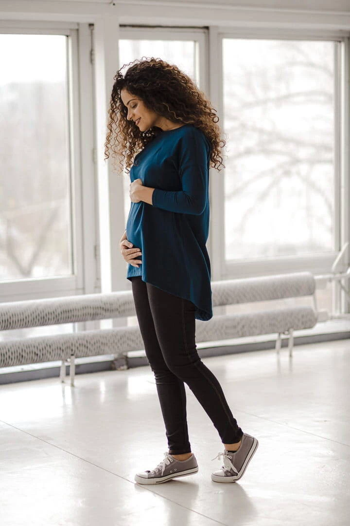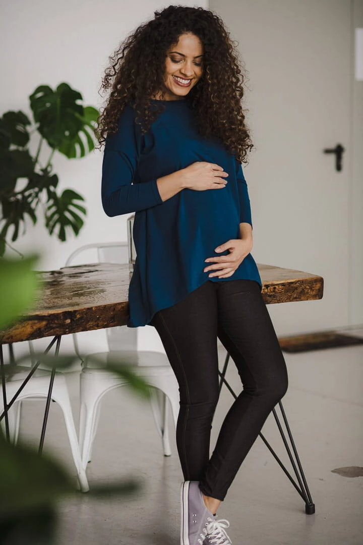 Objevte naši perfektní dámskou těhotenskou halenku, která se později stane vaší oblíbenou kojící halenkou. Nádherná barva Poseidon je jedinečným odstínem modré, který dokonale doladí váš těhotenský šatník. Volný střih a elastický materiál těhotenské halenky pro kojící maminky skvěle padne na rostoucí bříško a poskytuje nejen módní oversize vzhled, ale i výjimečný komfort pro budoucí maminku. Díky odolným krytým zipům umožňujícím pohodlné a diskrétní kojení je tato dokonalá těhotenská halenka outfitem do každé situace. Stylové těhotenské halenky/tuniky můžete nosit ležérně k legínám i těhotenským sukním. Tato těhotenská halenka pro těhotné je vyrobena z nejkvalitnějších prodyšných látek, které prošly přísnými testy Oeko-Tex Standard 100. Poskytnou vám měkkost a potěšení z nošení, ale nezpůsobí alergii vašemu miminku. Těhotenská halenka z kolekce Mommy si zachovává svou krásnou sytou barvu i po mnoha vyprání, což z ní dělá investici na roky. Naše pohodlné těhotenské a kojící halenky jsou celé vyrobeny v Polsku, což jim dodává jedinečný charakter. Přesvědčte se sami, že naše těhotenské a kojící oblečení je dokonalým řešením, navrženým v souladu s myšlenkou pomalé módy, abyste se z něj mohli těšit po mnoho let. Objevte nyní dámskou těhotenskou a kojící halenku Mommy v zajímavé barvě Poseidon!