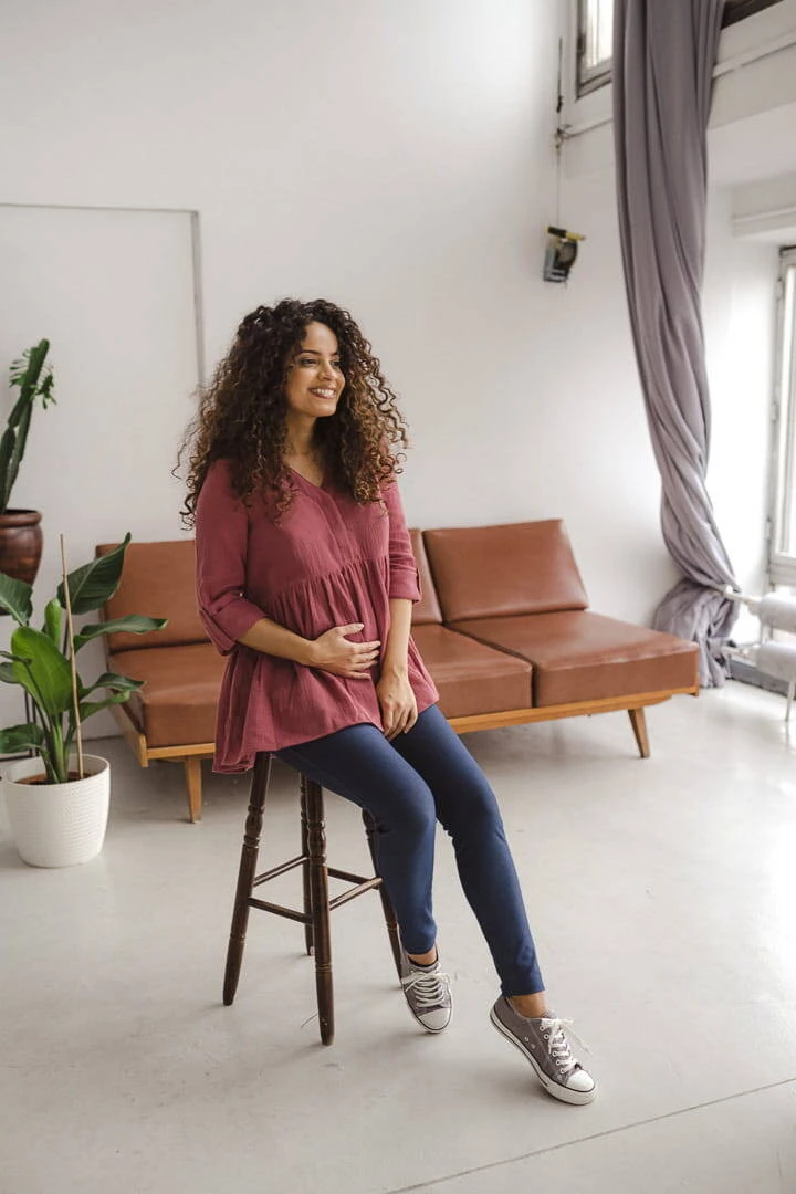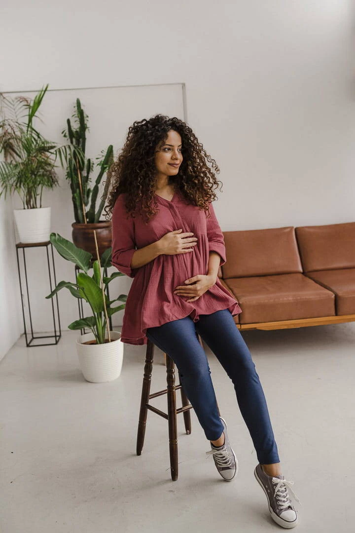 Zaprášená cedrová bio mušelínová těhotenská tunika GOTS Mother Nature