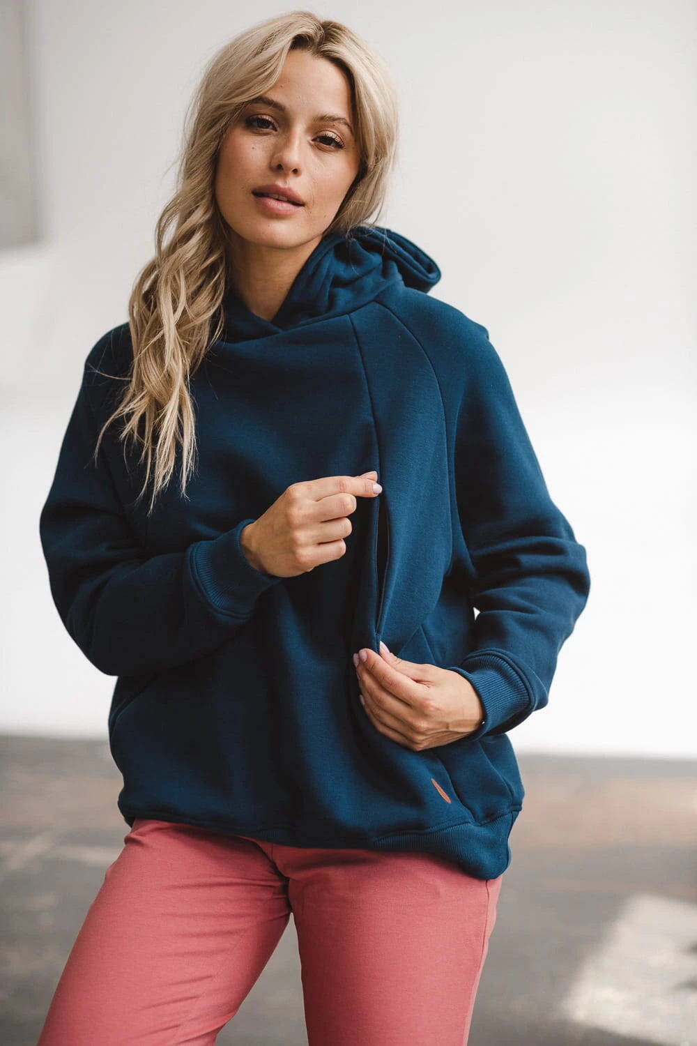 Investujte do pohodlí a stylu pro každou příležitost s funkční těhotenskou a kojící mikinou Motherhood v barvě Poseidon!