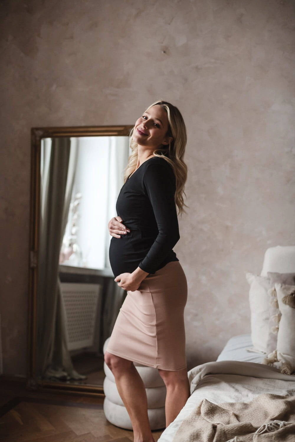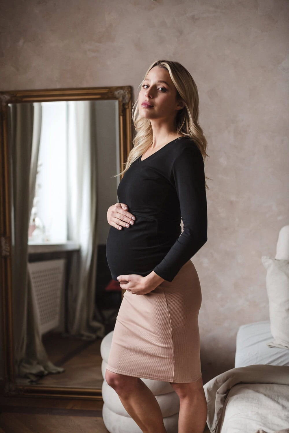 Již léta Vám poskytujeme dámské těhotenské halenky vhodné pro každé roční období. Prohlédněte si naši kolekci vysoce kvalitních těhotenských halenek včetně našeho jedinečného černého těhotenského topu. Vyrobeno z vysoce kvalitní bavlny s elastanem, zaručuje trvanlivost a odolnost vůči změnám barev i po mnoha praních. Látka, ze které je tato módní těhotenská halenka vyrobena, pečuje o těhotenské bříško budoucí maminky a splňuje normy Oeko-Tex Standard 100, což zajišťuje měkkost na dotek a bezpečnost pro vás i vaše miminko. Vybírejte těhotenské halenky navržené funkčně a pohodlně, které se stanou na mnoho let neodmyslitelným prvkem vašeho šatníku.