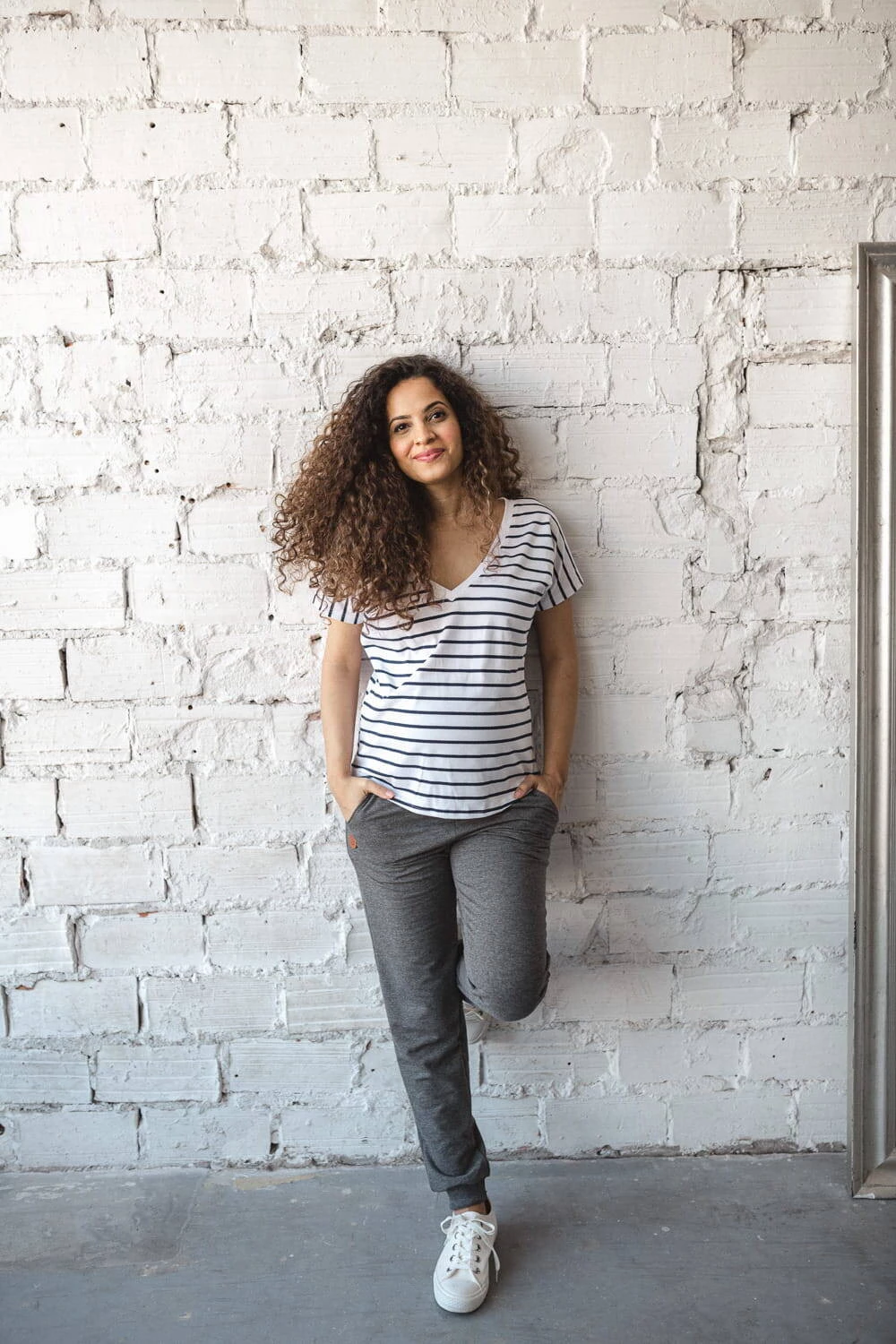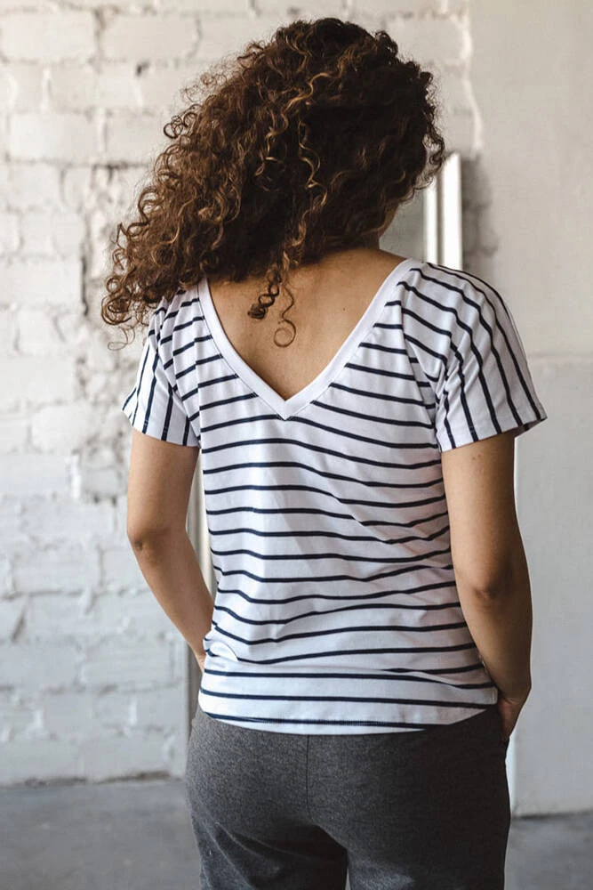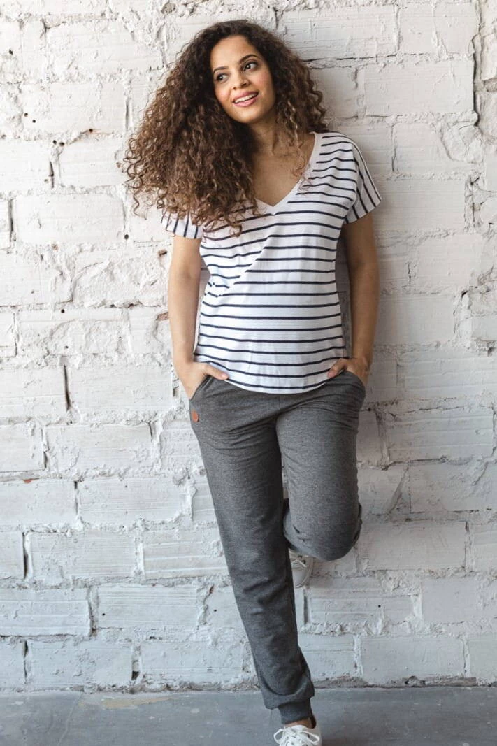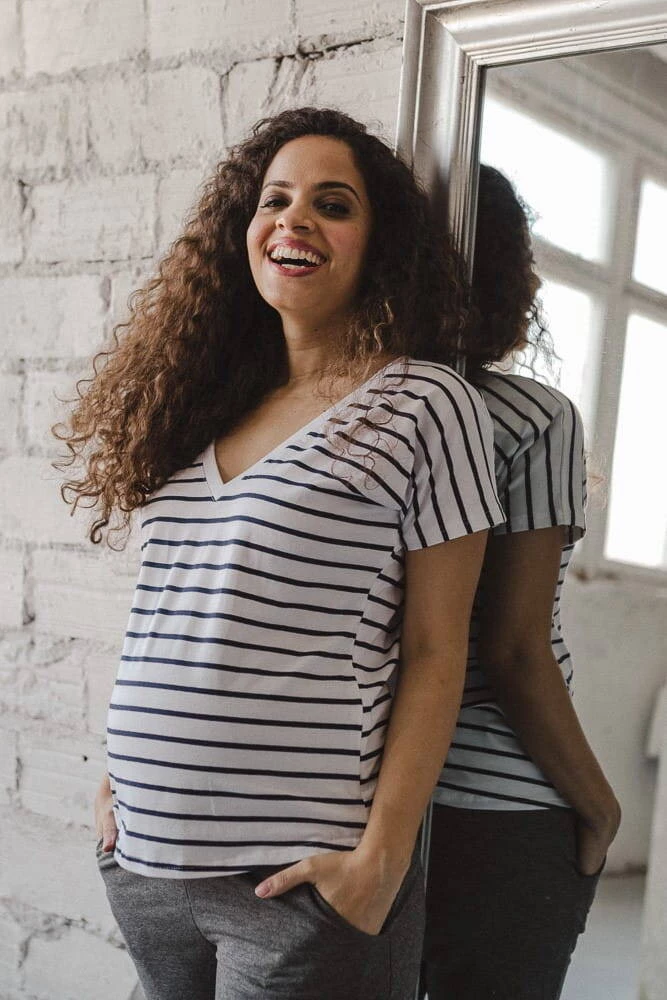 Oboustranná bílá proužkovaná halenka je perfektní základní těhotenská halenka pro kojící ženy. Módní těhotenská halenka a pro čerstvé maminky je kvintesencem stylu a ženskosti v šatníku. Letní těhotenské halenky s pohodlnými zipy na krmení vám umožní diskrétně a snadno krmit miminko i na veřejných místech, jako je galerie nebo park. Jako každá základní dámská halenka je i tato ženská těhotenská halenka pro budoucí maminky dokonalým těhotenským stylem a základem pro váš každodenní styling.