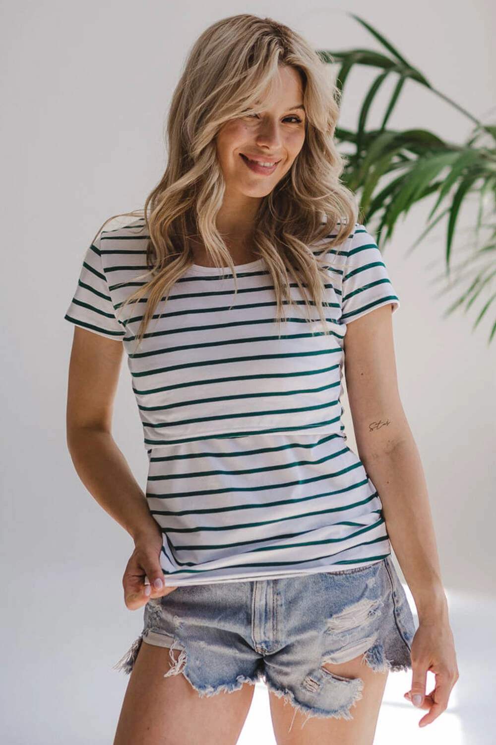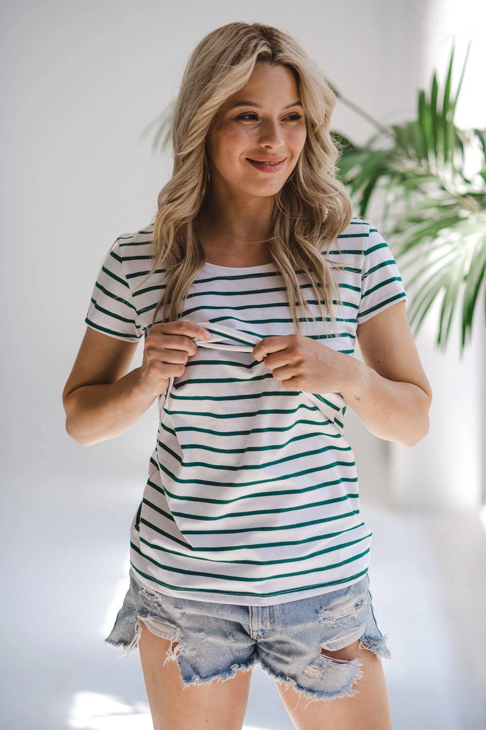 Tato nabídka zahrnuje letní těhotenskou halenku s módními bílými a zelenými pruhy. Stylovou těhotenskou halenku s krátkým rukávem pro kojící ženy vyrobila v Polsku respektovaná značka Milk & Love, která si již léta získává uznání mezi ženami v těhotenství i po porodu a dbá na pohodlí a funkčnost žen v tomto období. Naše dokonalé těhotenské halenky a těhotenské střihy pro kojící maminky jsou nejen módní, ale i praktické. Pohodlný poutkový panel usnadňuje krmení a pomalý módní styl znamená, že je můžete nosit i po skončení období krmení. Vybírejte těhotenské oblečení a střihy těhotenských halenek, které s vámi zůstanou roky.