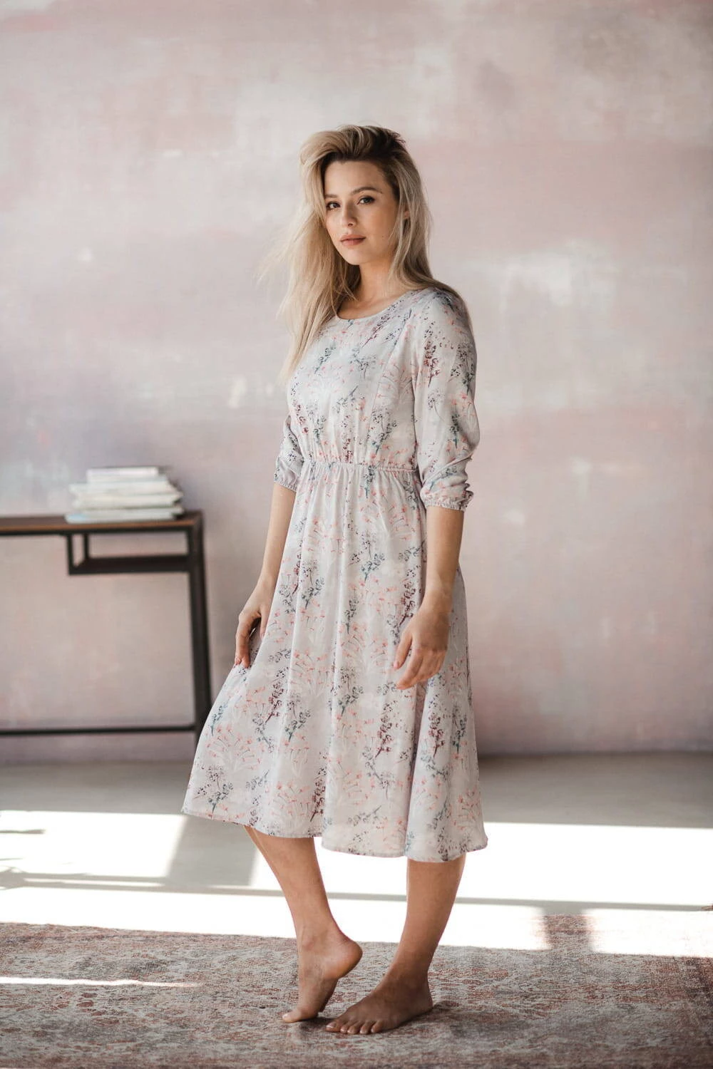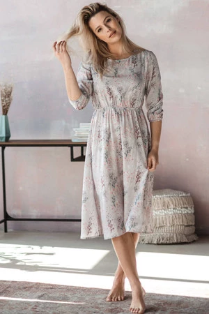 Lovely Dress těhotenské a kojící šaty s 3/4 rukávy - holubičí šedá s květinami