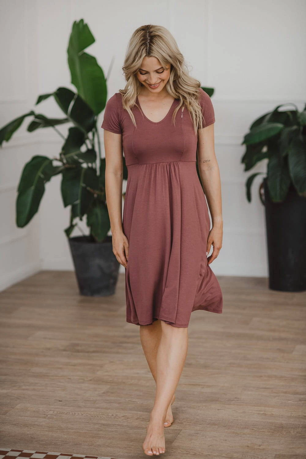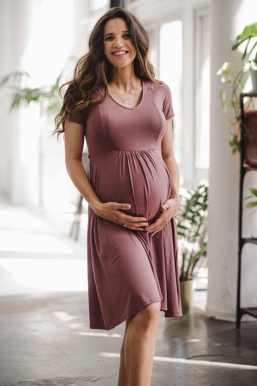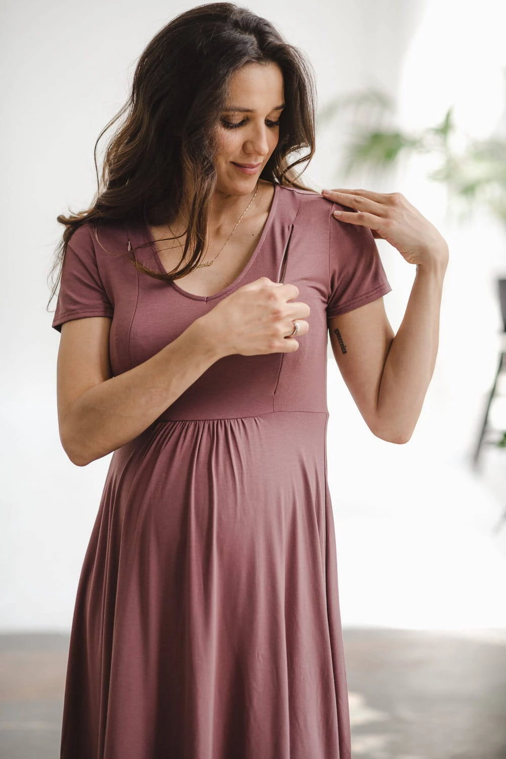 Mommy chic těhotenské a kojící šaty - Růžově hnědé