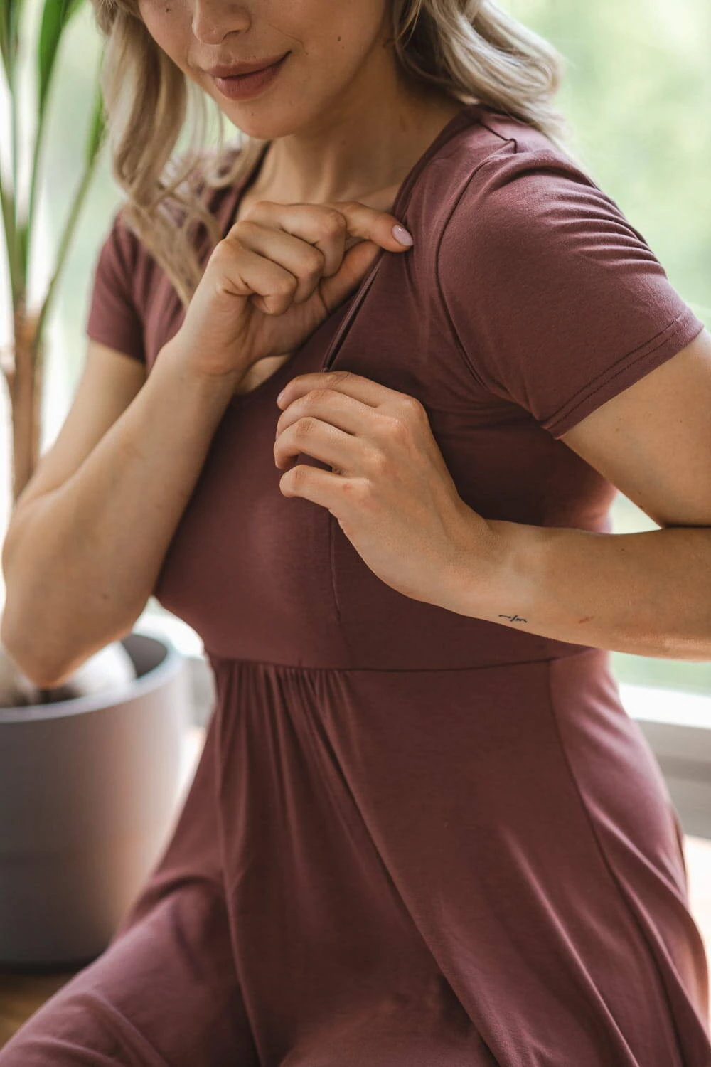 Funkčnost: Šaty pro kojící maminky mají dva skryté zipy, které umožňují diskrétní kojení v každé situaci doma i venku.