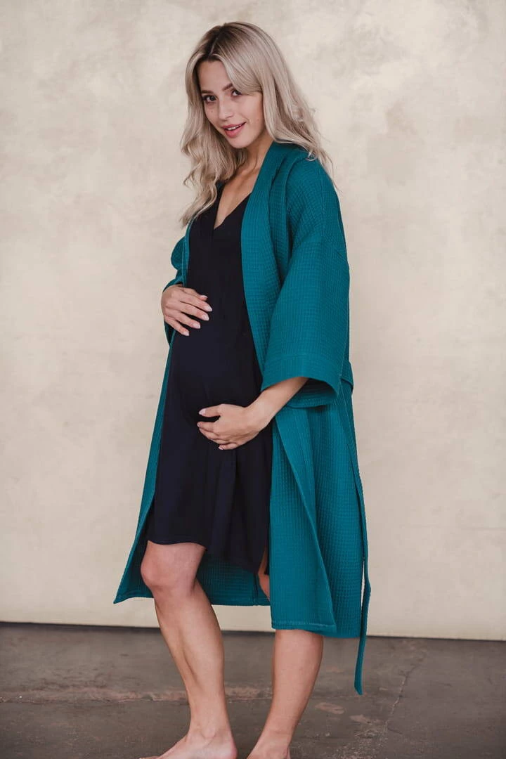 Délka noční košile je pečlivě upravena a zajišťuje pohodlí a volnost pohybu jak při nočních procházkách po nemocničních chodbách, tak při krmení novorozence. Vyztužený výstřih do V je praktickým řešením, které usnadňuje krmení miminka – miminko můžete nakrmit rychle a diskrétně při zachování naprostého soukromí. Oversize střih tmavě modré košile splní očekávání každé budoucí maminky. Dámská těhotenská košile je nejen pohodlné noční prádlo poskytující prostor pro rostoucí bříško, ale také skvělé řešení, které zaručí pěkný vzhled po porodu bez ohledu na změny postavy. Dokonalá noční košile Moon je vyrobena z nejkvalitnější bambusové viskózy a prošla přísnými testy, aby zajistila maximální pohodlí a bezpečí pro vás i vaše dítě.