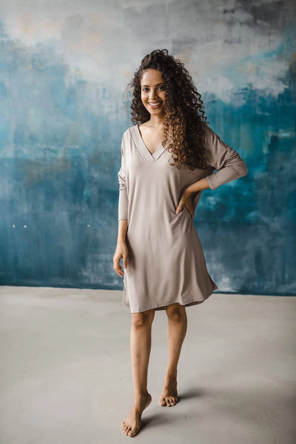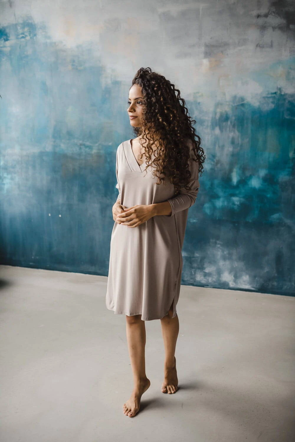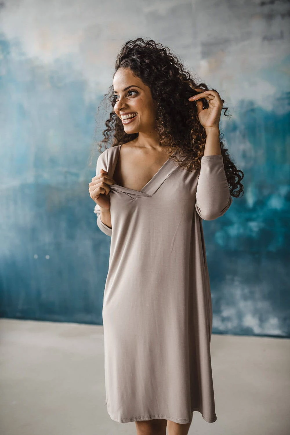 Bambusová těhotenská a kojící noční košile s dlouhým rukávem, Moon béžová