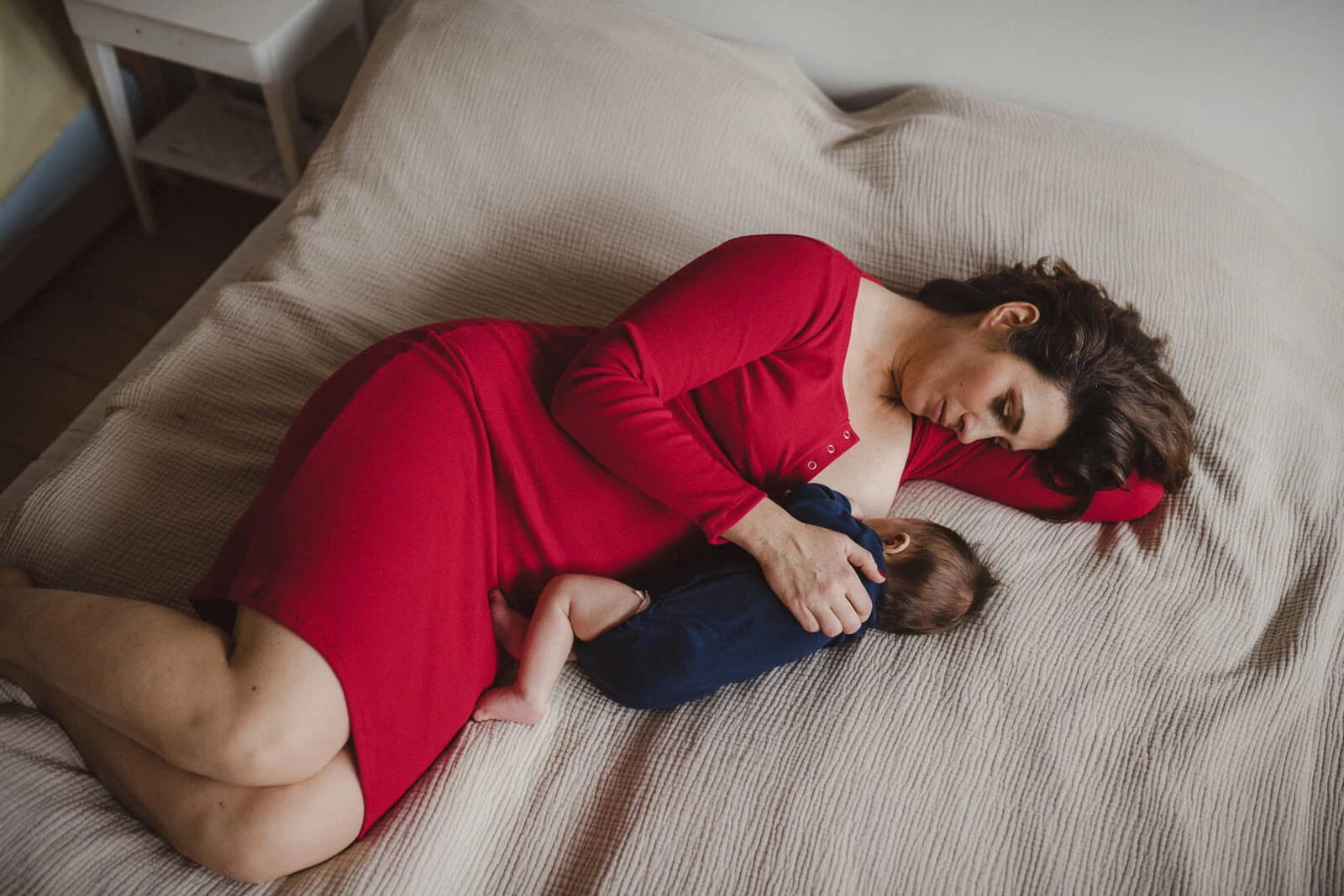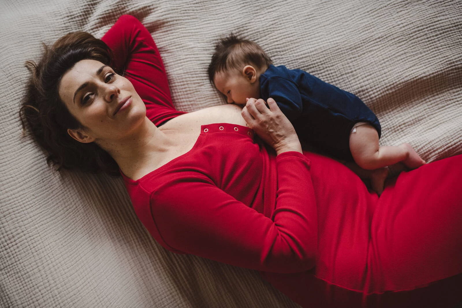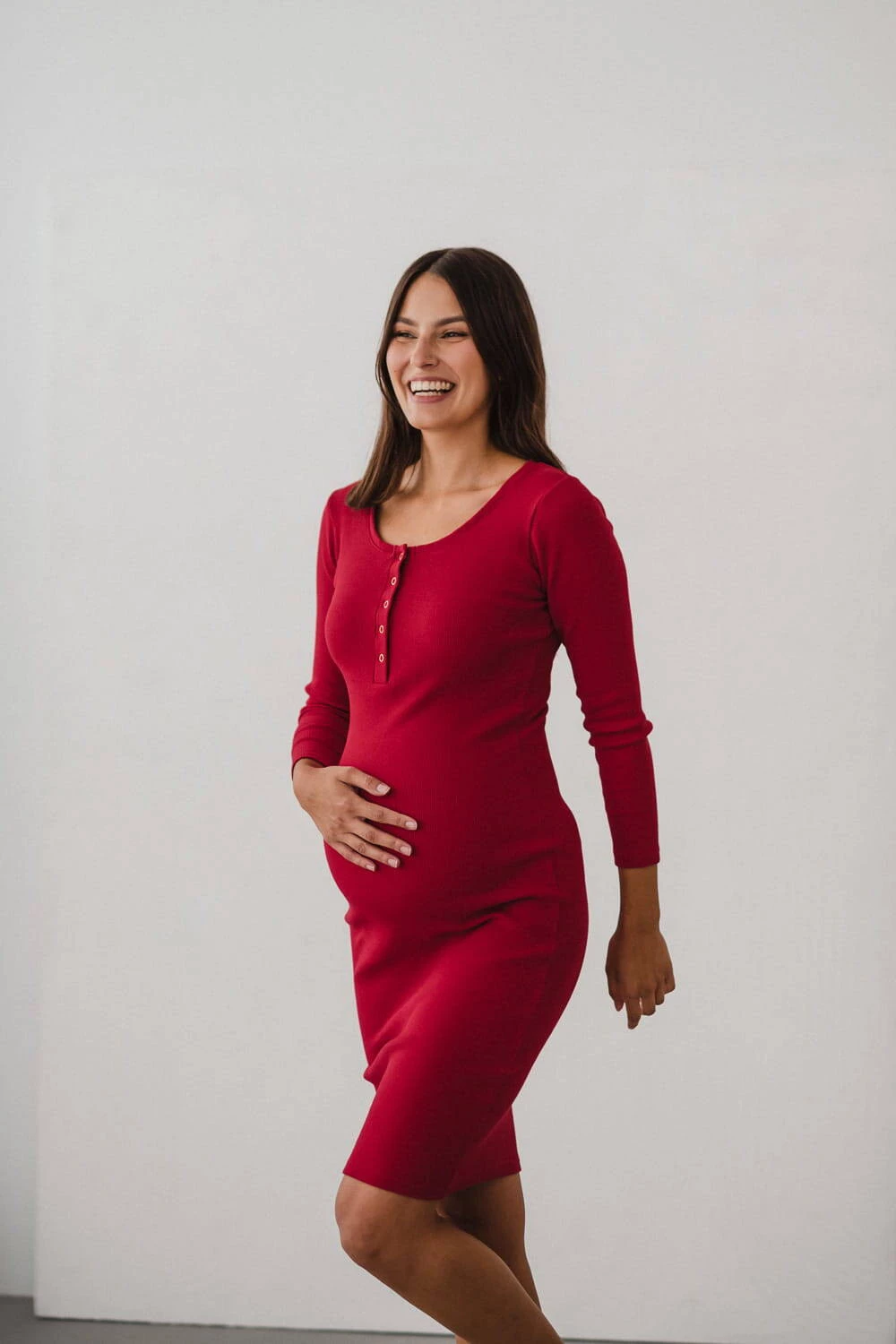 Těhotenské a kojící šaty z kolekce těhotenského oblečení dostupné na Formommy jsou vyrobeny z žebrovaného úpletu v krásné červené barvě. Toto těhotenské oblečení je extrémně pohodlné a ženské. Díky kvalitnímu materiálu, který se nedeformuje a zajišťuje pohodlí při nošení, vám naše těhotenské oblečení včetně červených šatů pro kojící maminky vydrží dlouho. Dokonalé základní těhotenské šaty mají vypasovaný střih a druky ve výstřihu, což usnadňuje volné a diskrétní kojení. Pohodlné těhotenské/kojící šaty jsou perfektní od prvního trimestru, můžete je nosit i po těhotenství jako tradiční rovné šaty.