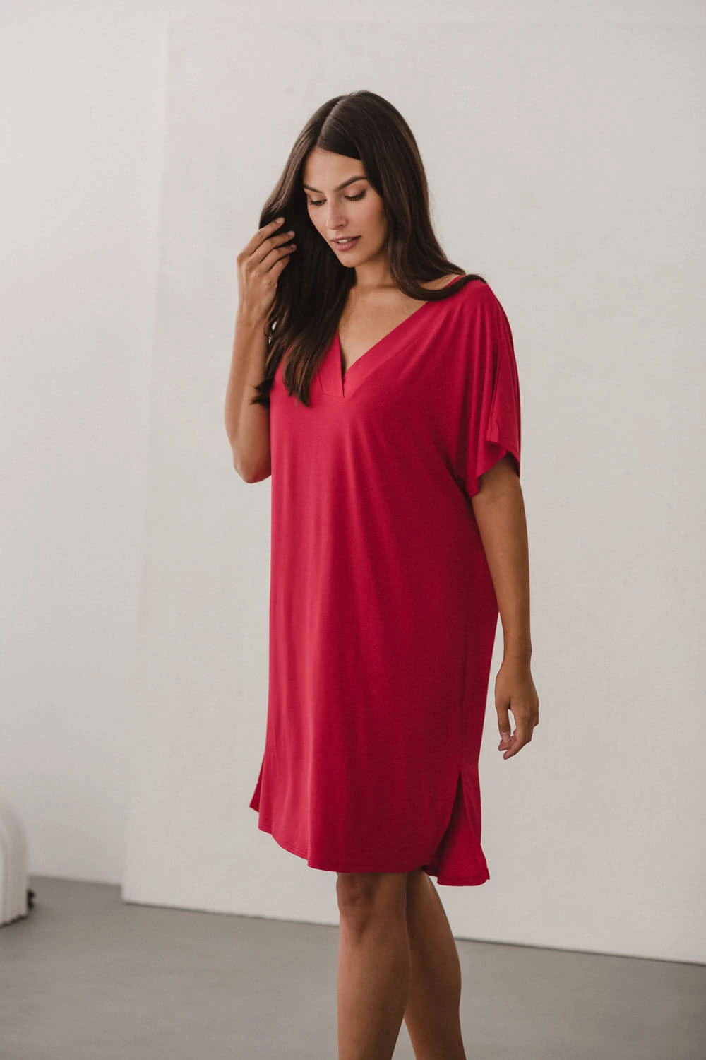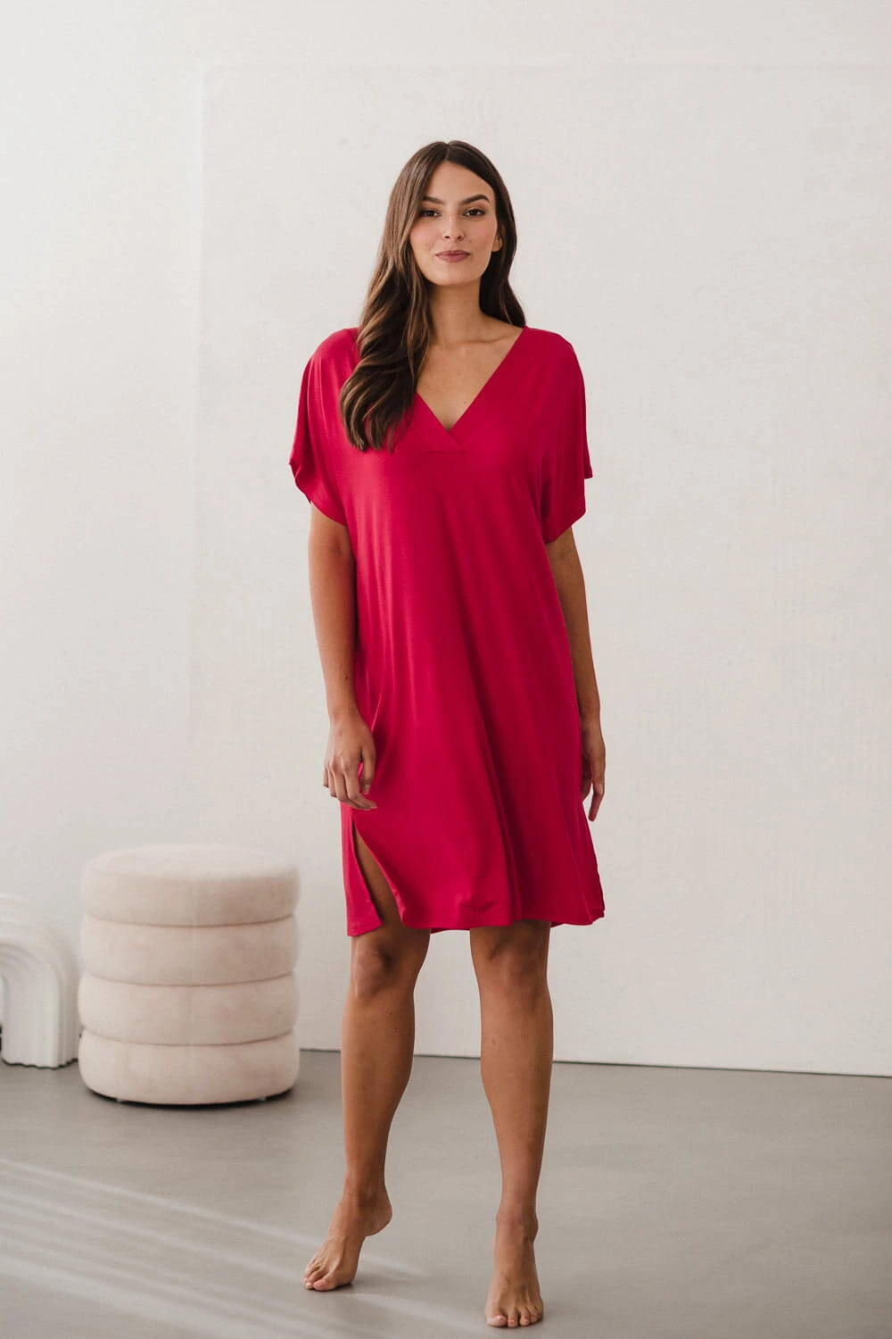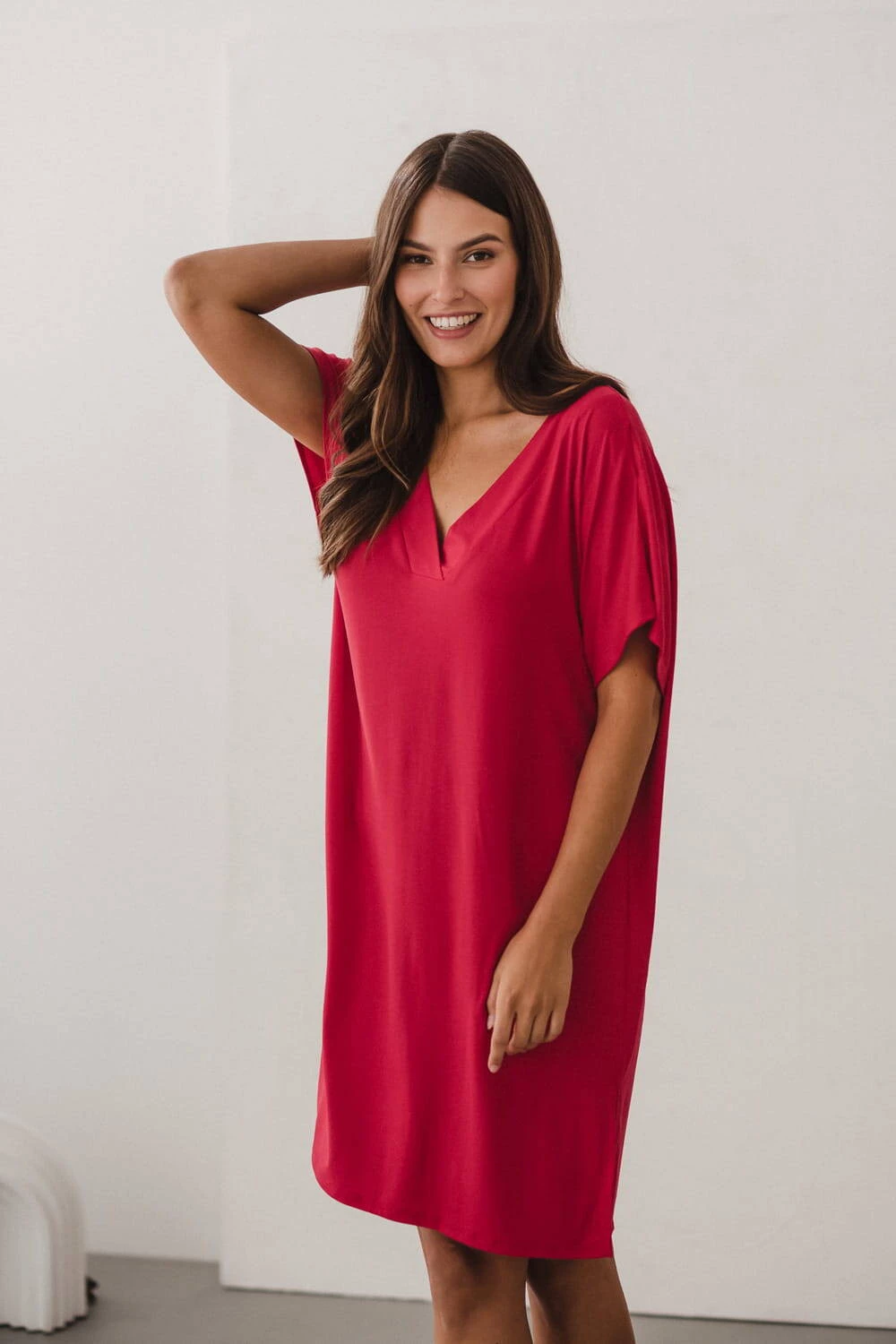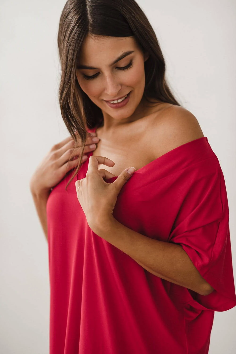 Těhotenská a kojící noční košile Moon bambus - Malina