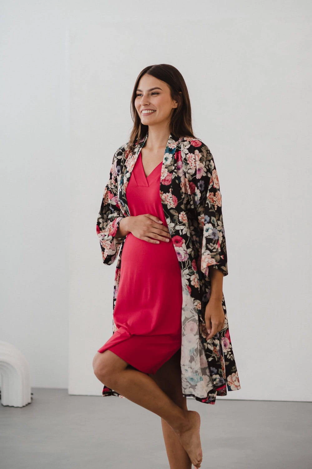 Těhotenská bambusová noční košile I pro krmení Moon malina