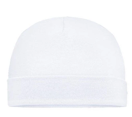 bílá novorozenecká čepice ze 100% bavlny. Nezpůsobuje alergie a nesenzibilizuje miminko, zajišťuje dobrou cirkulaci vzduchu v hlavičce miminka, aby se miminko nepotilo. Čepice je nenahraditelným produktem dětské výbavičky po dobu pobytu v nemocnici, proto se vyplatí investovat do různých barev a postarat se o pohodlí vašeho miminka.