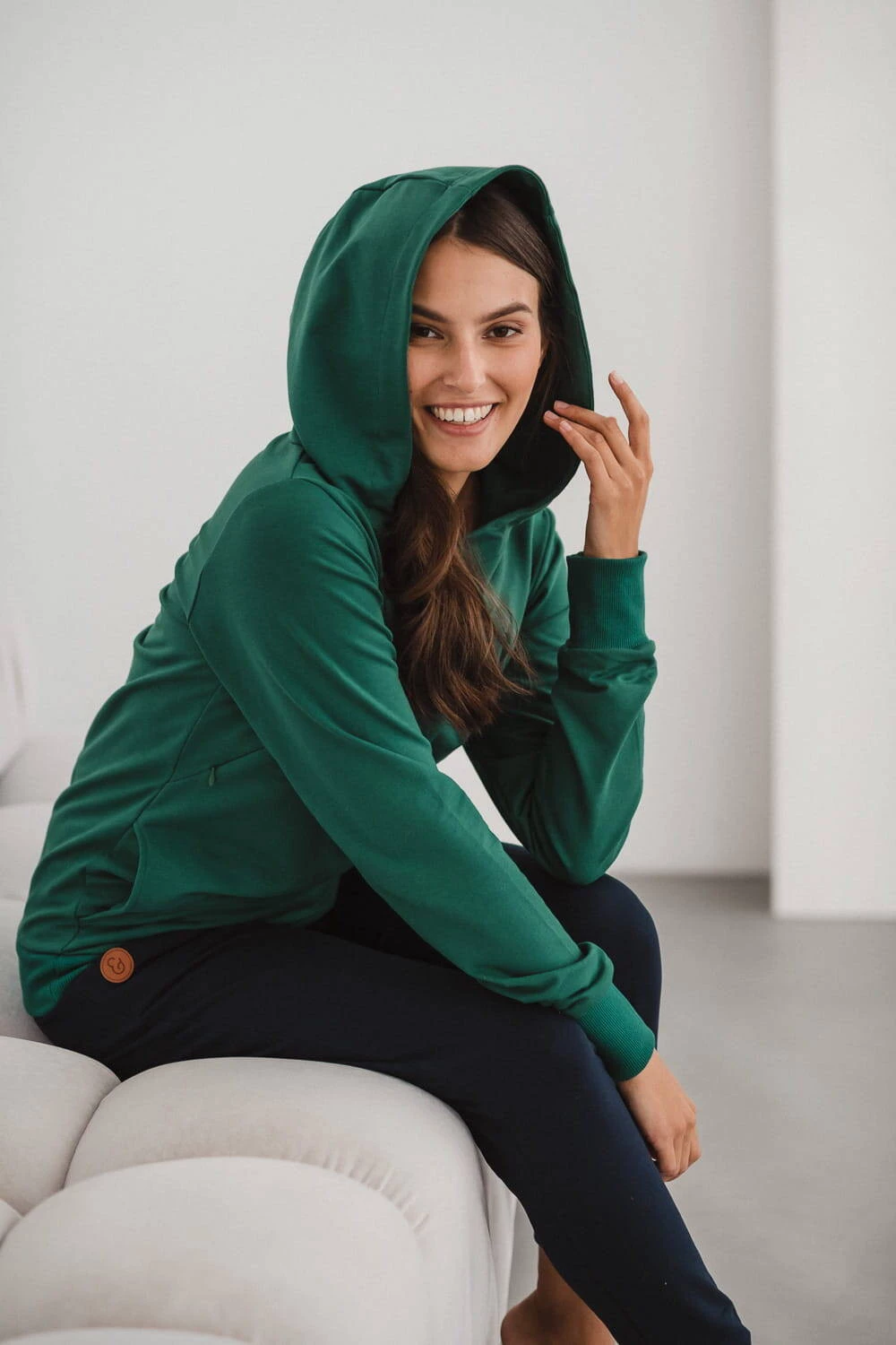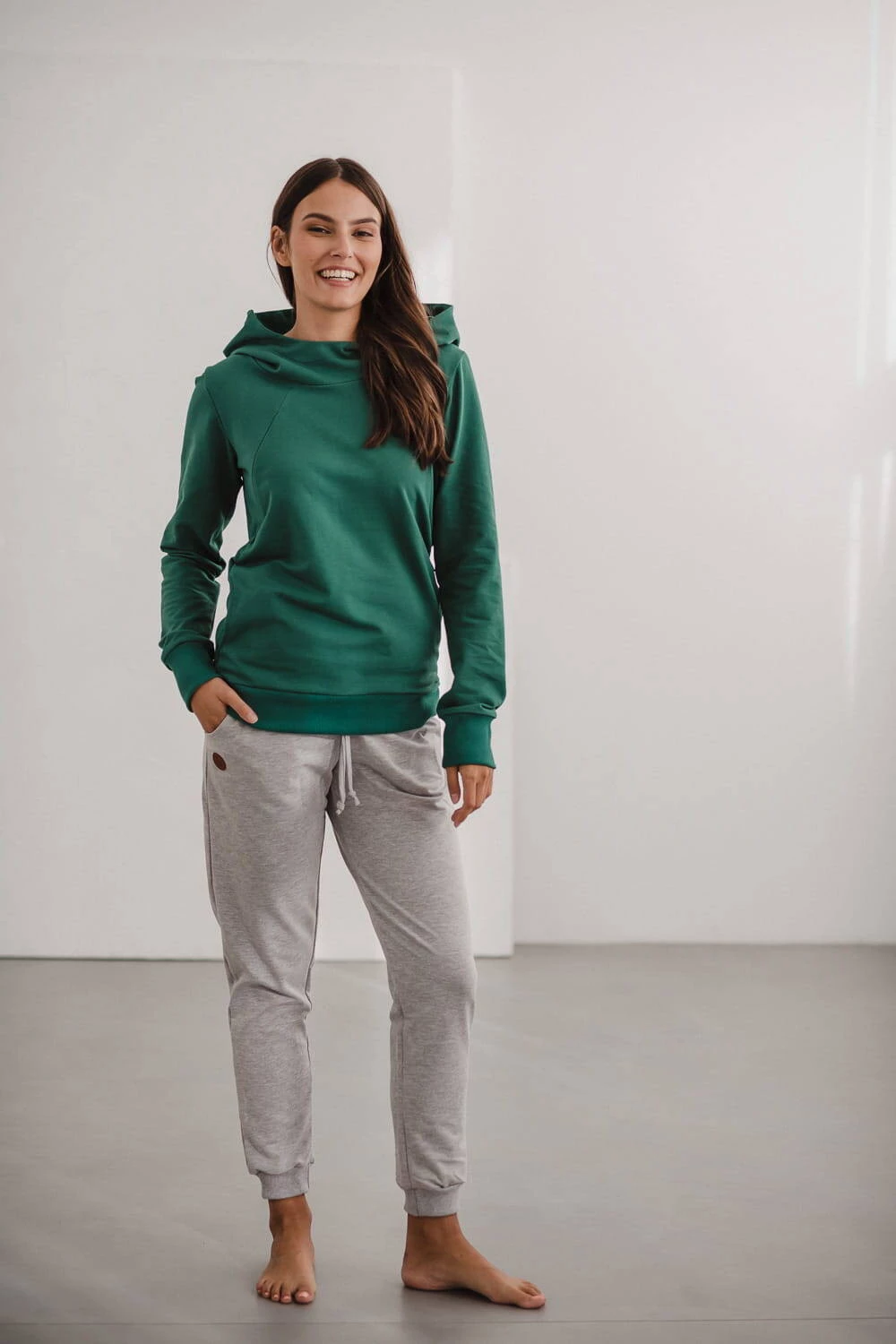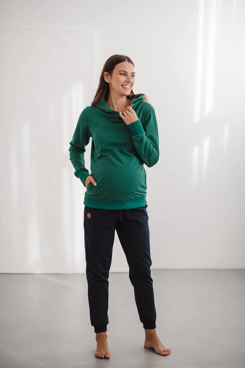 Těhotenská mikina na kojení je perfektním řešením pro ženy, které mají rády sportovní styl a pohodlí. Pokud chcete pohodlné kojení, krásná zelená mikina na kojení je perfektní volbou! Perfektní model do chladných dnů, na podzimní procházku a pohodlné krmení bez ohledu na situaci, ve které má dítě hlad. Vyberte si pohodlný outfit a investujte do bavlněné mikiny , která vám zůstane i po těhotenství, protože naše kojící mikina zůstává tvarově i barevně nezměněna i po opakovaném praní.
