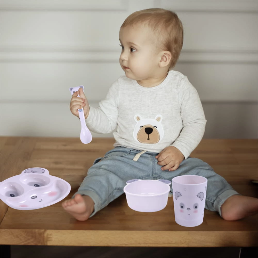 Přísavka se lžičkou je ideálním produktem pro krmení vašeho dítěte. Víko těsně chrání potraviny, speciální přihrádka je určena pro uložení lžíce, aby se neztratila a zůstala čistá. Gumová přísavka zabraňuje posouvání misky po stole a chrání jídlo před rozsypáním. Vyrobeno výhradně z bezpečné materiály určené pro styk s potravinami, bez bisfenolu A (0 % BPA). Misku lze mýt v myčce nádobí. Kapacita: 300 ml
