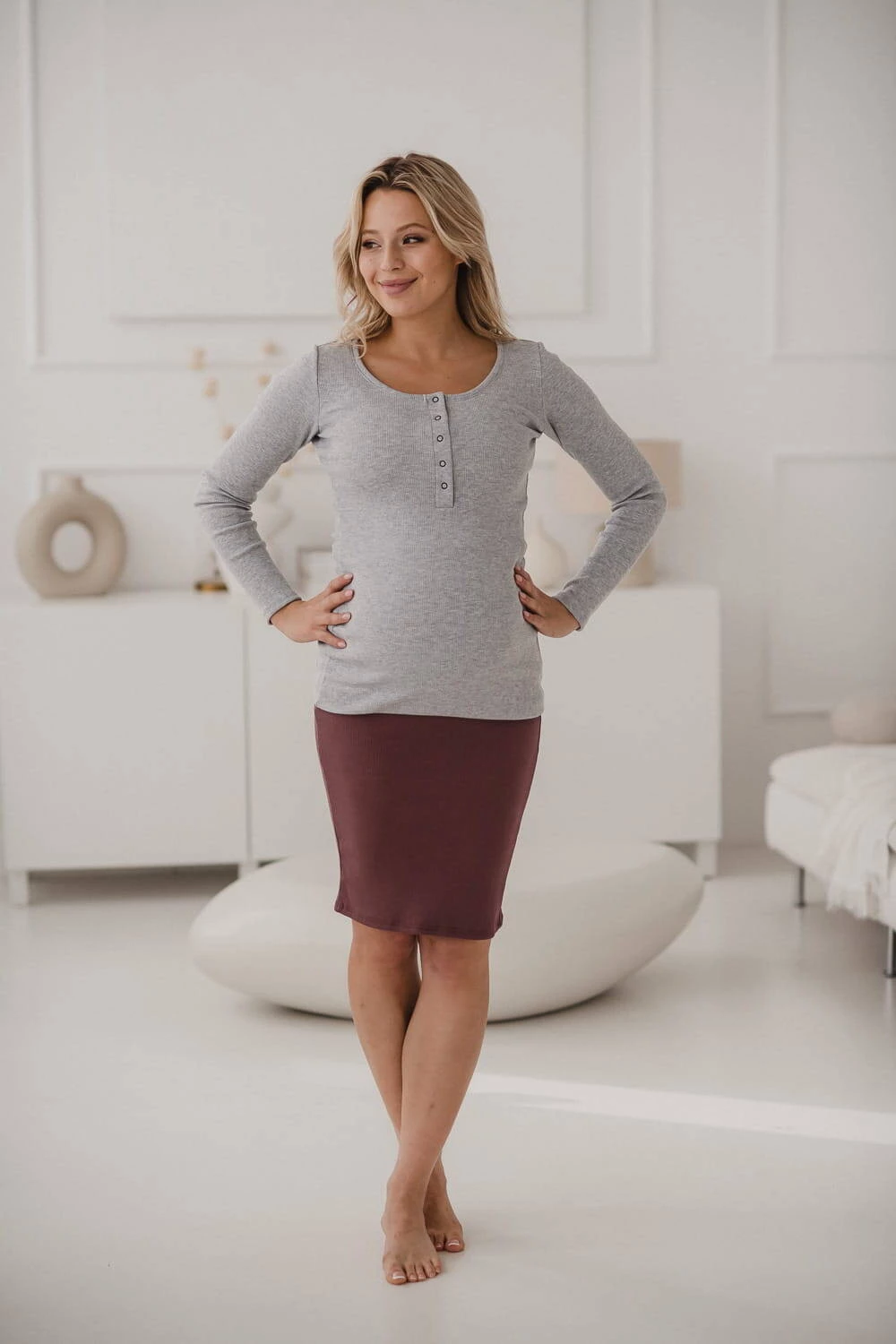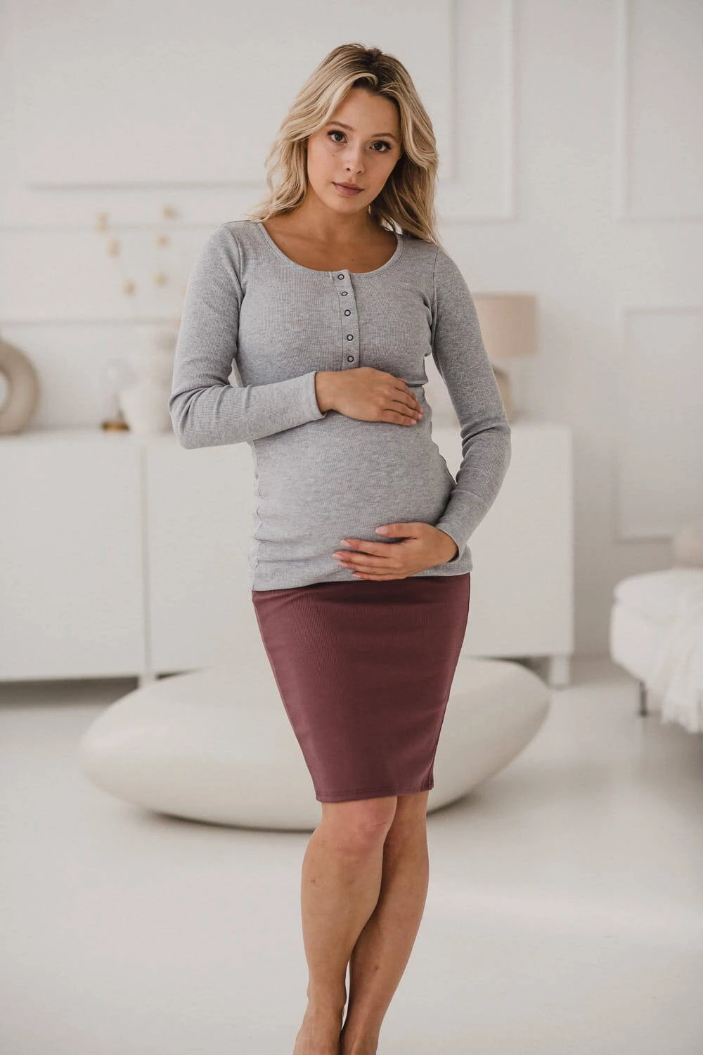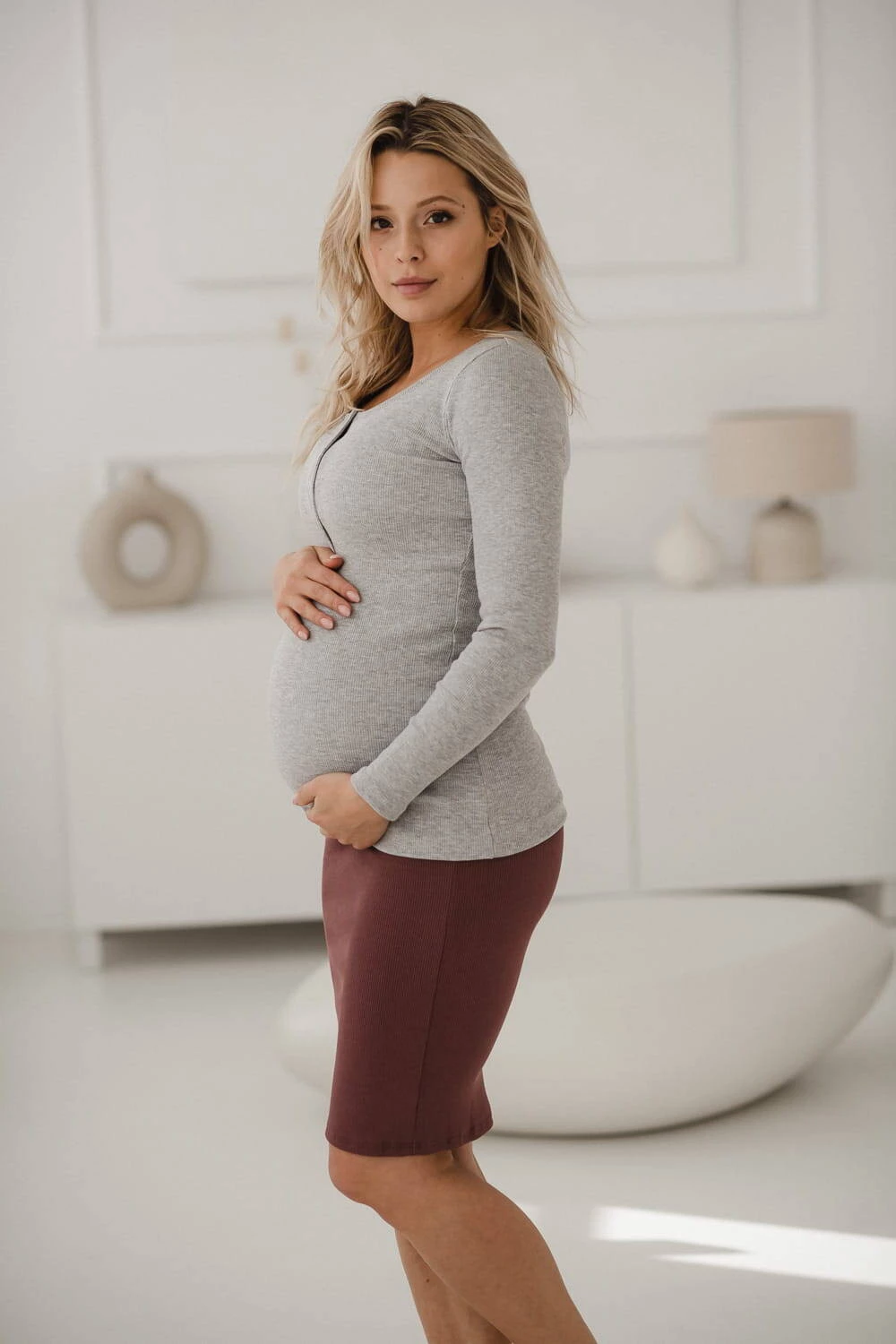 Žebrovaná těhotenská a kojící halenka na bříšku - šedá