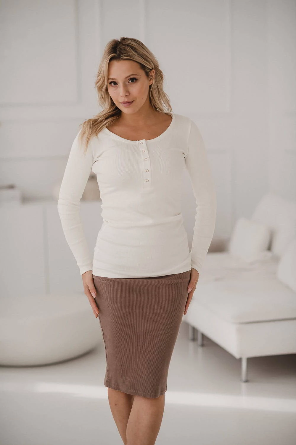 Pletená, žebrovaná těhotenská a kojící halenka krémové barvy