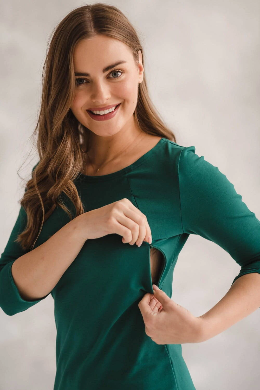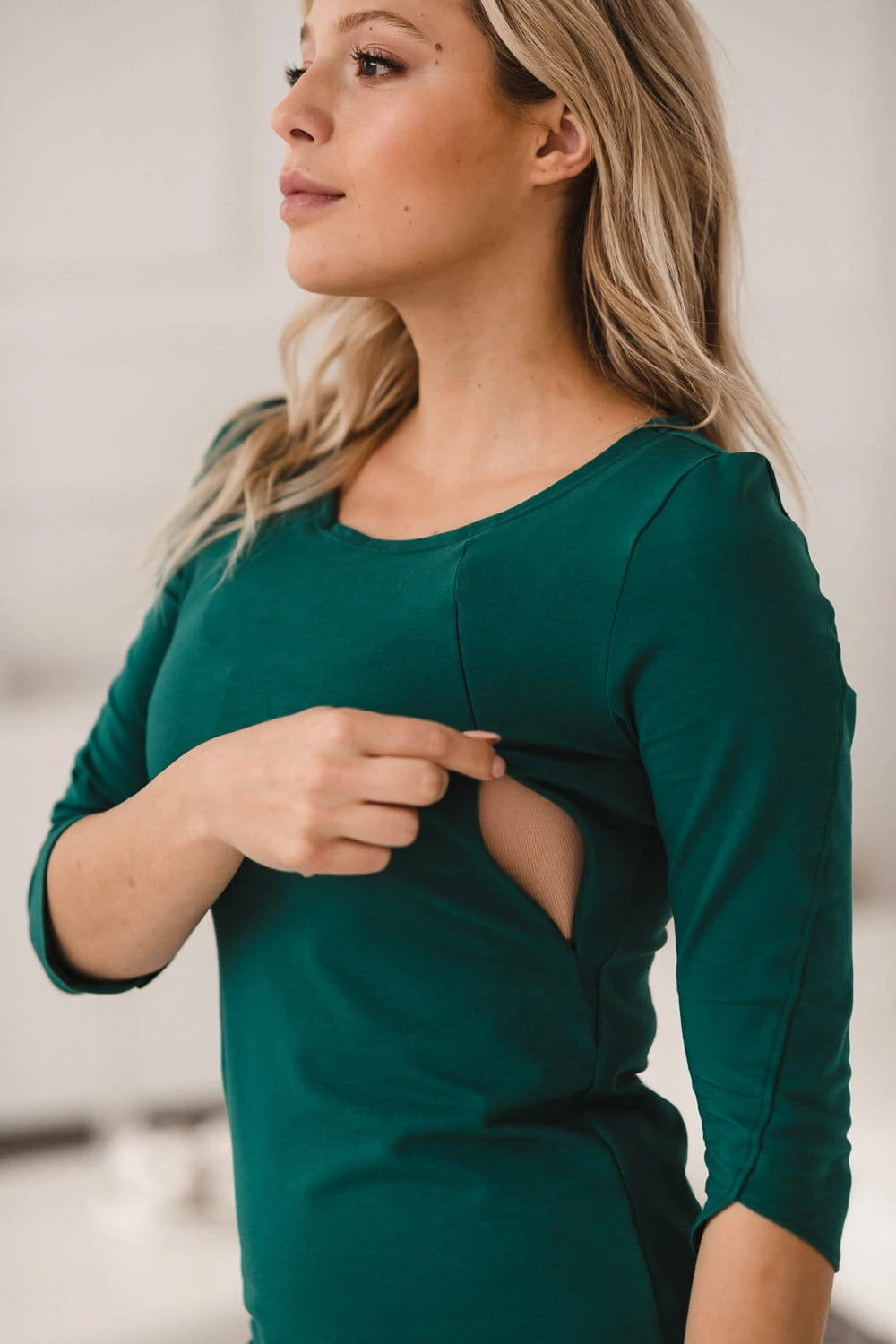 Milky Dress kojící šaty, 3/4 rukáv, lahvově zelené