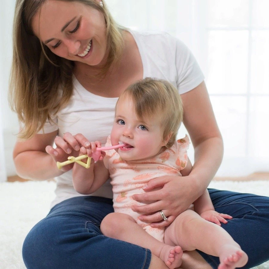 Nezapomeňte dětský zubní kartáček před a po každém použití opláchnout teplou vodou. Zubní lékaři doporučují vyměnit zubní kartáček každé tři měsíce. Neobsahuje BPA.