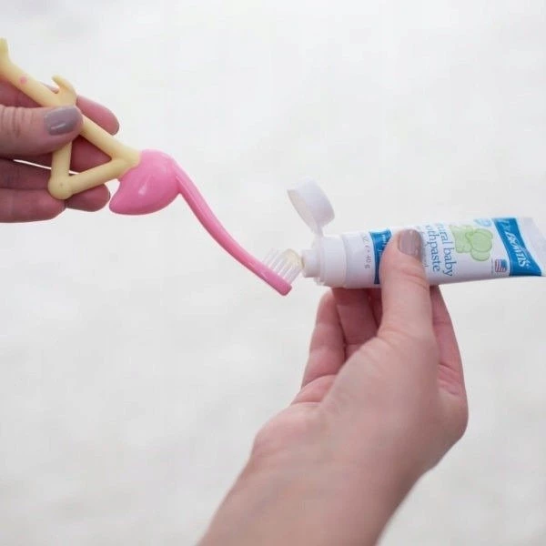 Dětský zubní kartáček je přizpůsoben malým ústům a pomáhá rozvíjet dovednosti potřebné k samostatnému čištění zubů. Má měkké štětiny pro jemné kartáčování. Krokodýlí nožičky pomáhají malým prstíkům pohodlně držet kartáček. podstavec swivel udržuje zubní kartáček bezpečně ve svislé poloze. Nezapomeňte zubní kartáček před každým použitím a po něm opláchnout teplou vodou. Zubní lékaři doporučují výměnu každé tři měsíce z hygienických důvodů. Pro dětistarší 12 měsíců