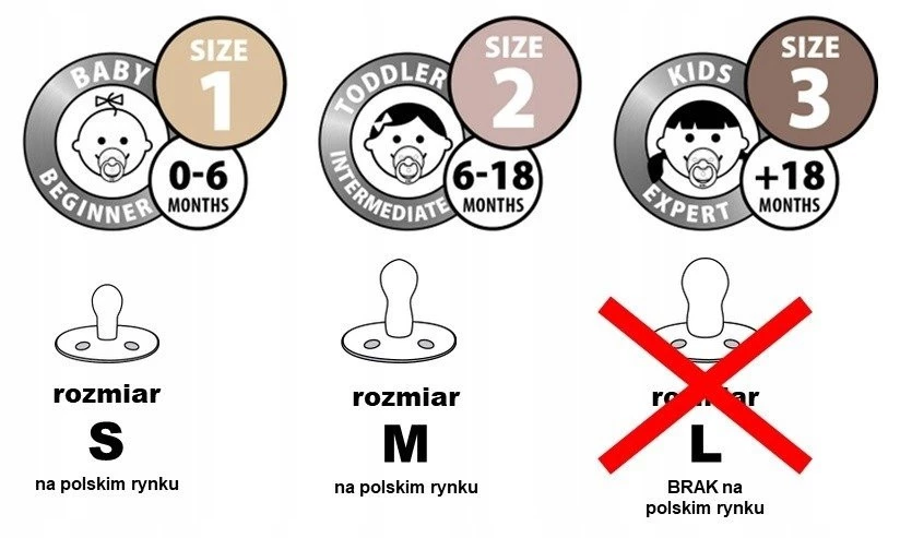 • wysokość smoczka kauczuk Hevea: 25 - 27 mm