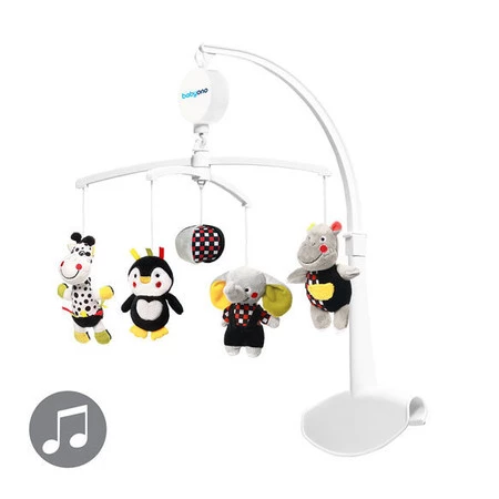 Kolotoč na dětskou postýlku Babyono s kontrastní hrací skříňkou