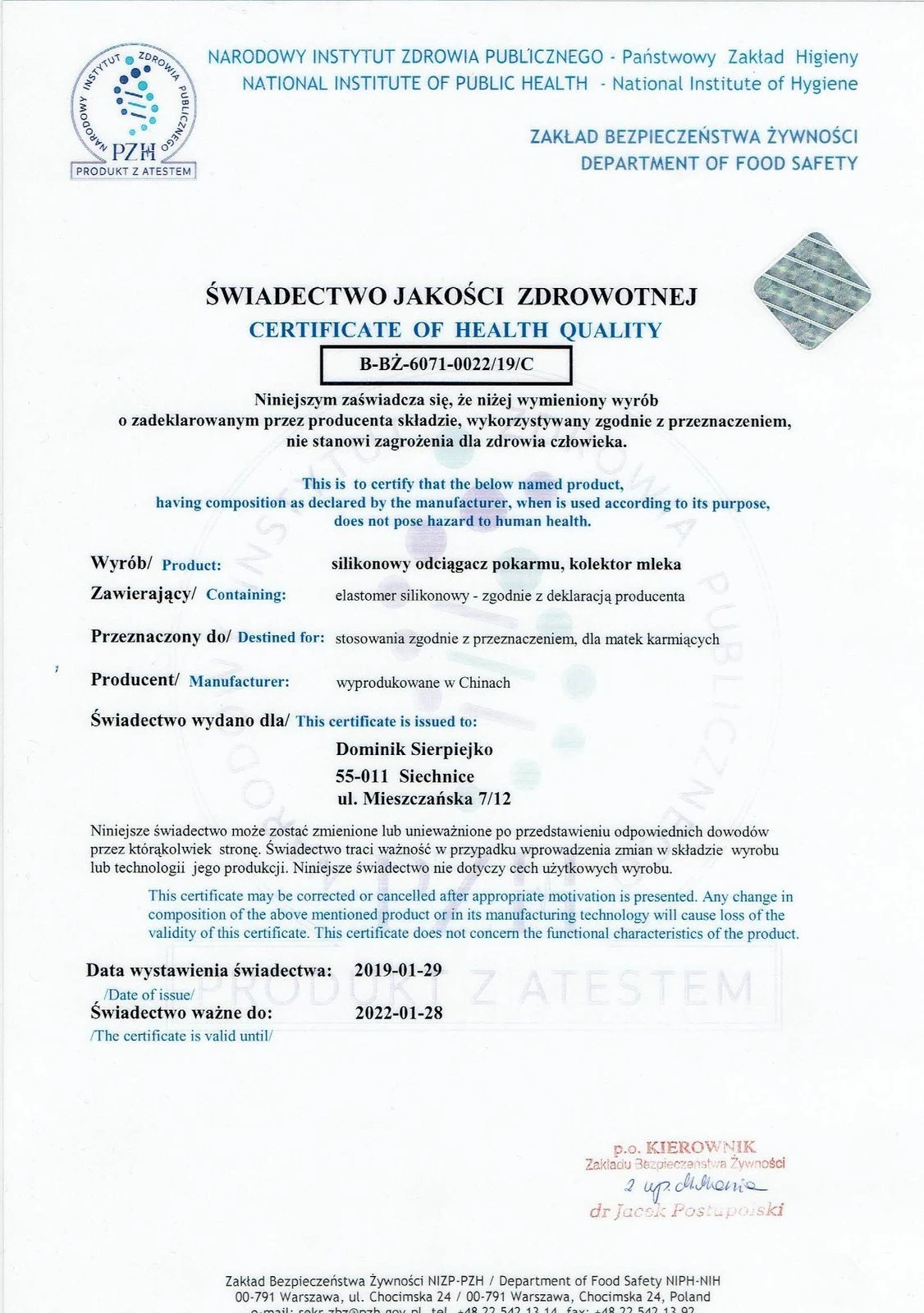 Výrobek je vyroben z bezpečných a certifikovaných materiálů - jsou to potravinářský silikoncož je bez obsahu BPA. Originál rozdělovač značky MAMI je vysoce kvalitní výrobek - je laboratorně testován, má certifikát PZH i bezpečnostní certifikáty. To prokazuje 100% bezpečnost pro dítě i matku.